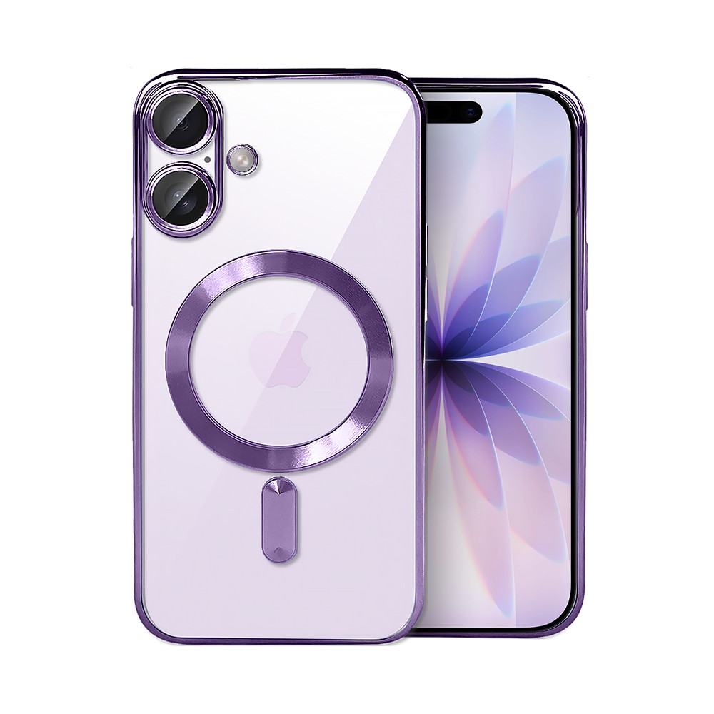 Etui do iPhone 17 MagSafe Luxury Protect przeźroczyste, hybrydowa ochrona kamery, fioletowe