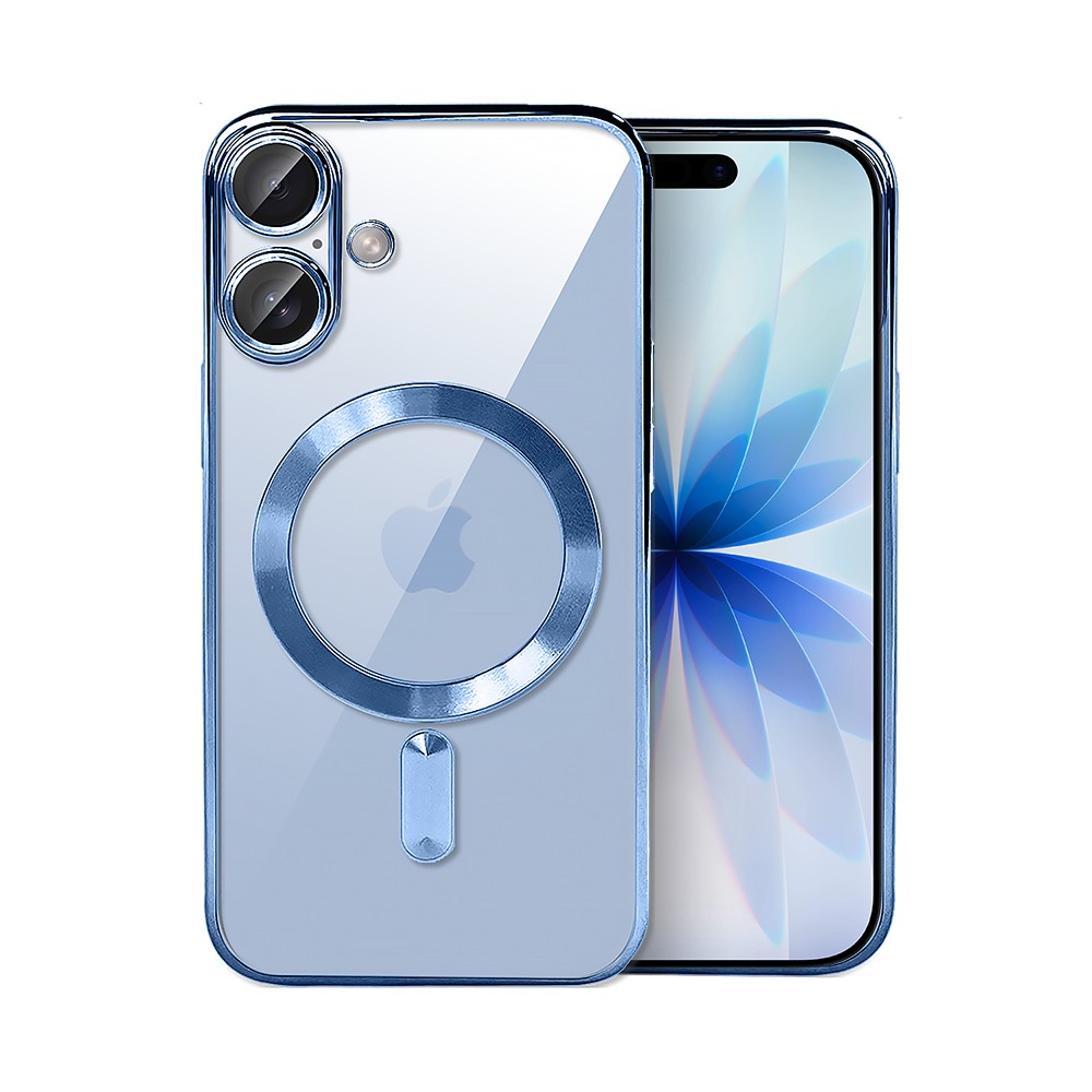 Etui do iPhone 17 MagSafe Luxury Protect przeźroczyste, hybrydowa ochrona kamery, niebieskie