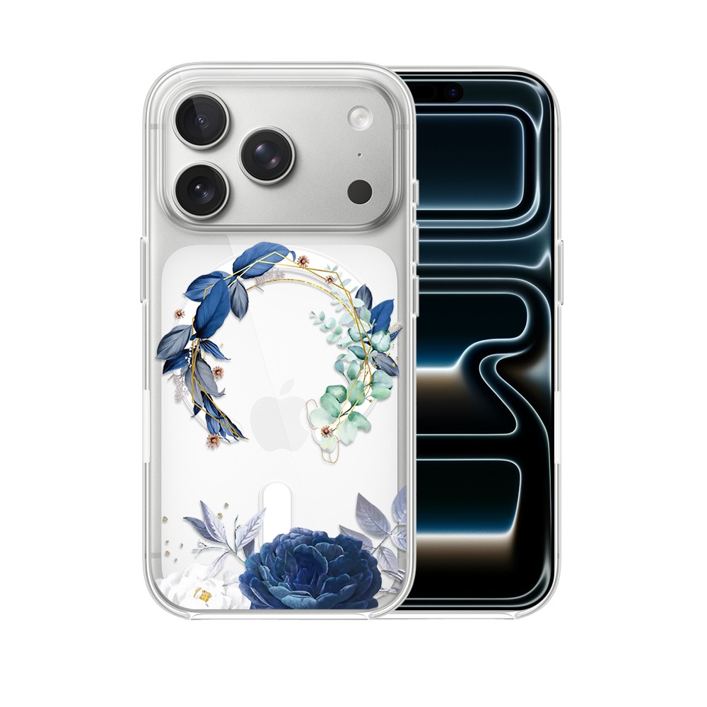 Etui do iPhone 17 Pro Flower MagSafe, niebieskie kwiaty, przeźroczyste