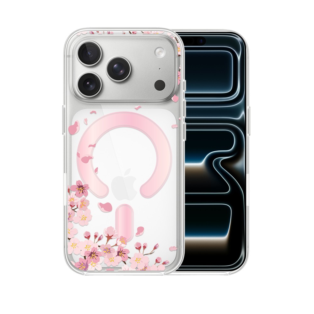 Etui do iPhone 17 Pro Max, Flower MagSafe z nadrukiem kwiat wiśni, przeźroczyste