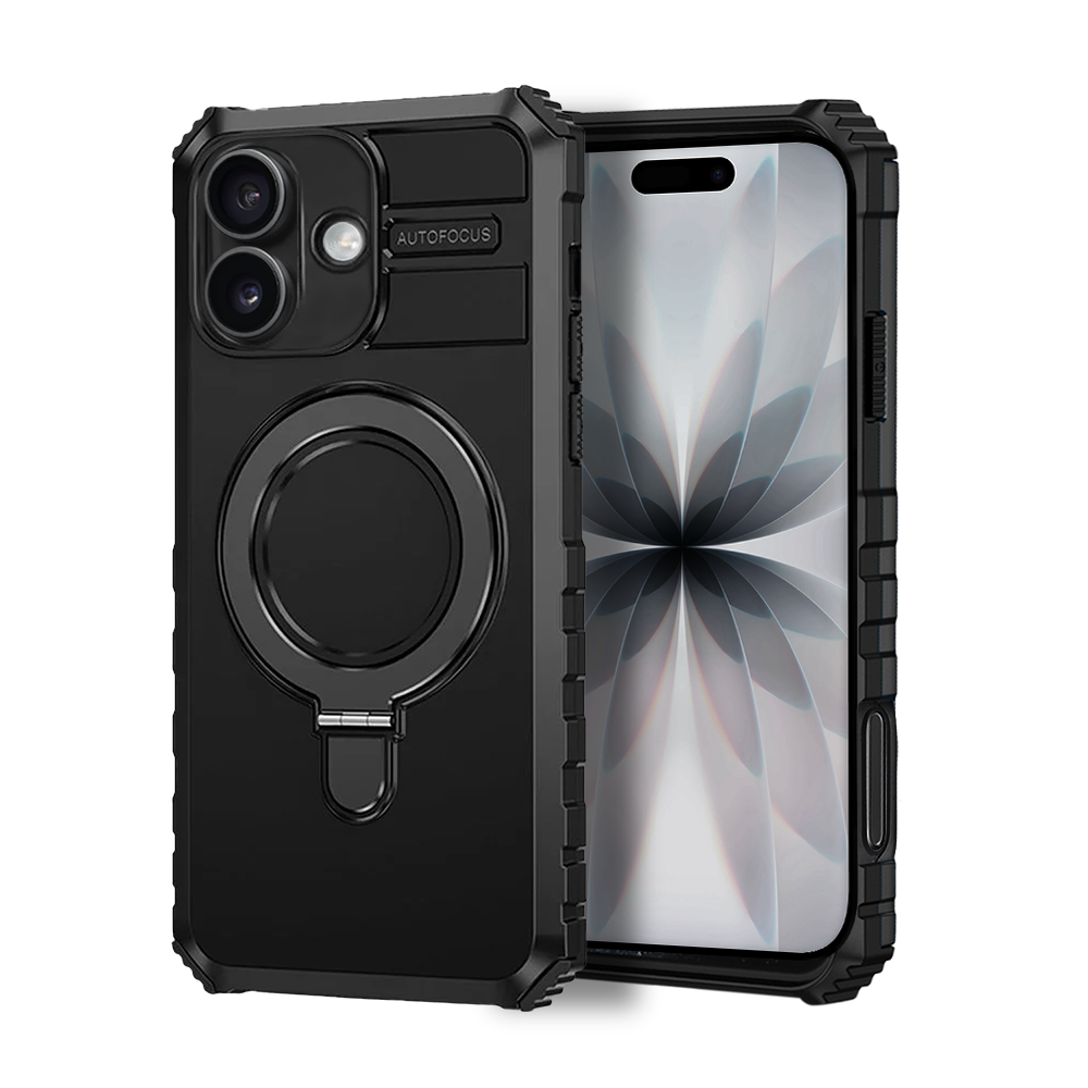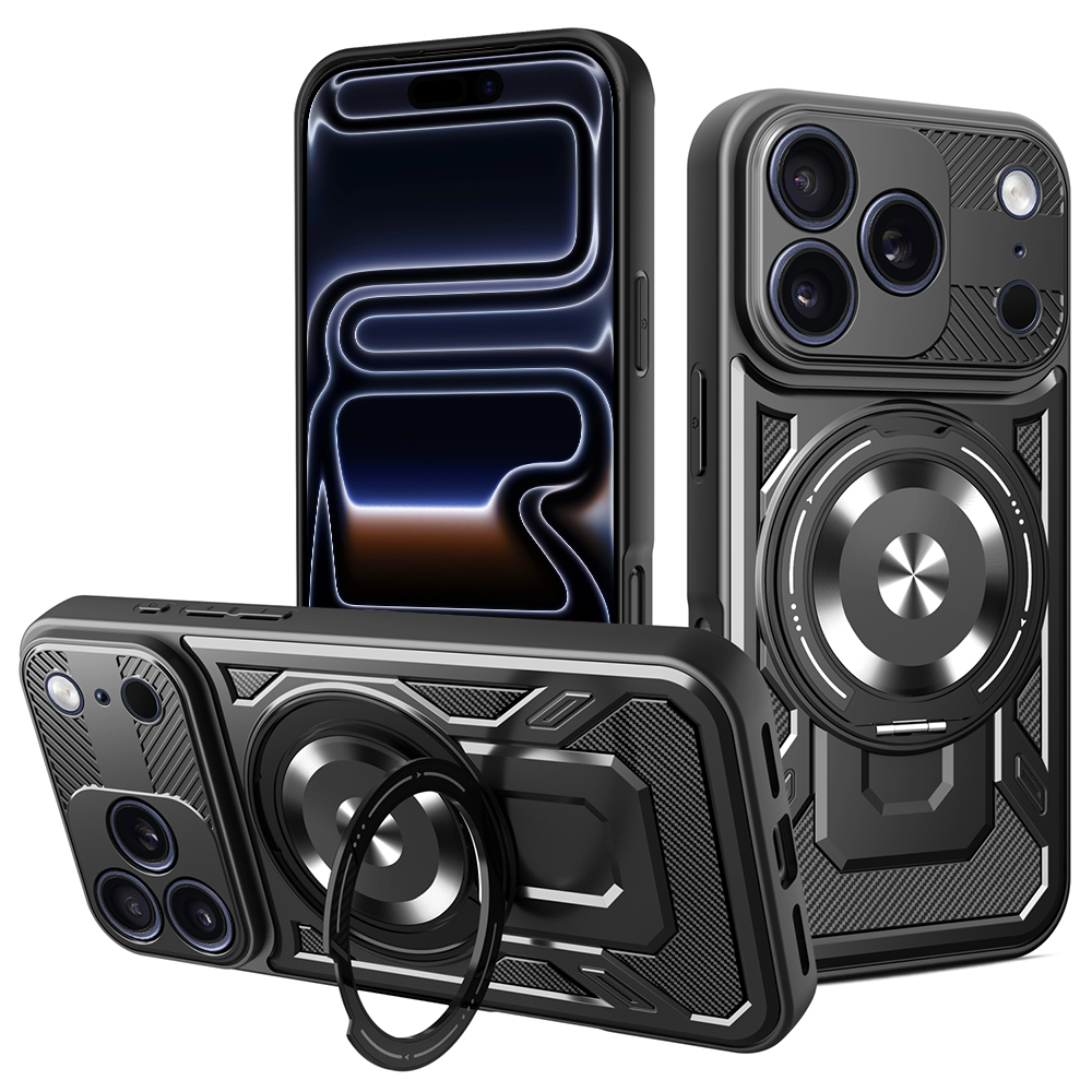 Etui do iPhone 17, pancerne, z osłoną aparatu i metalową podstawką MagSafe, czarne