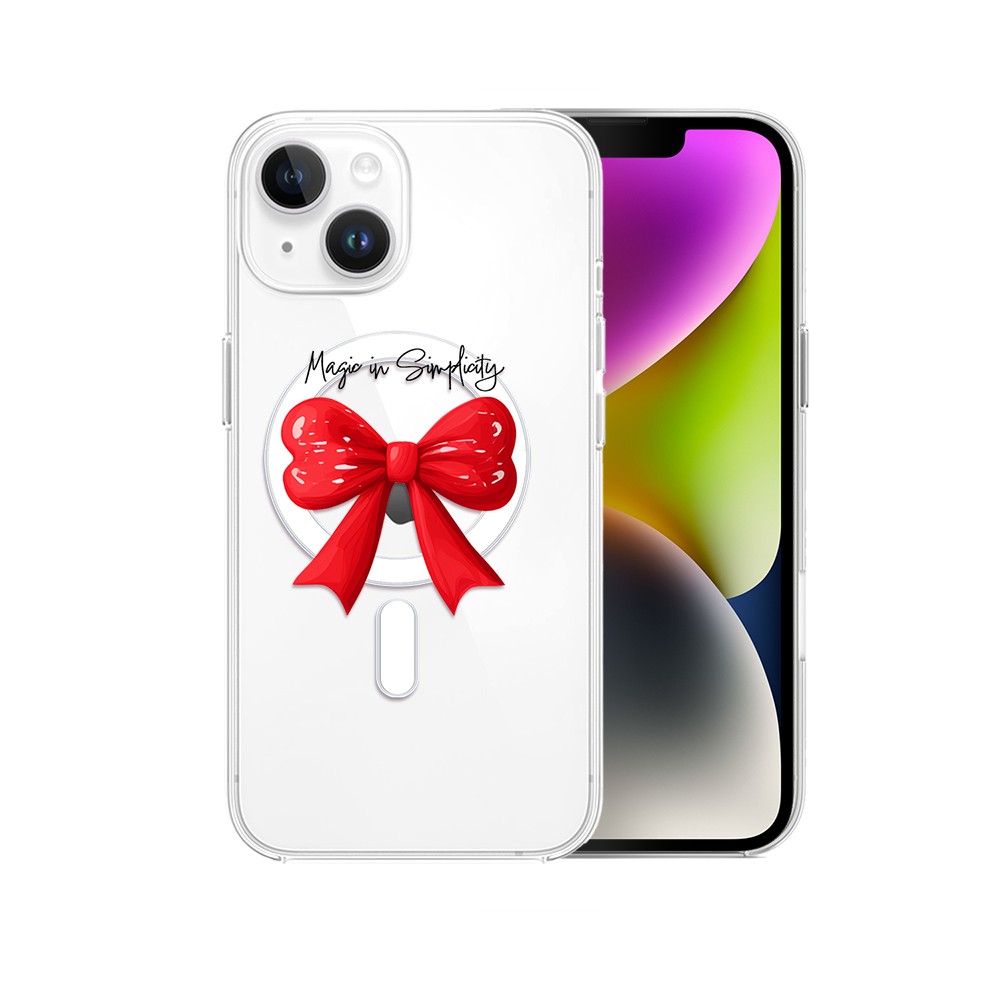 Etui do iPhone 14 Plus z MagSafe, Przytulne święta, Czerwona kokarda, przeźroczyste