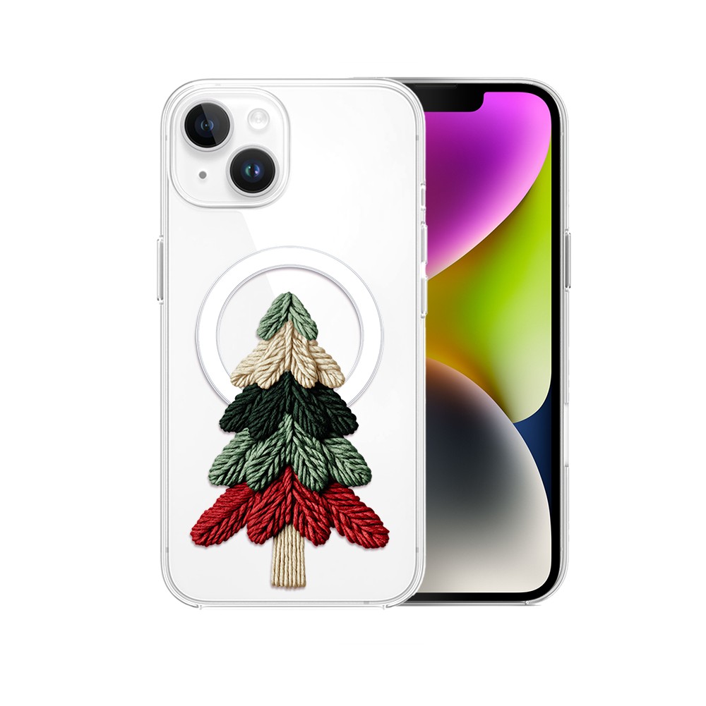 Etui do iPhone 14 Plus z MagSafe, Przytulne święta, Dziana choinka, przeźroczyste