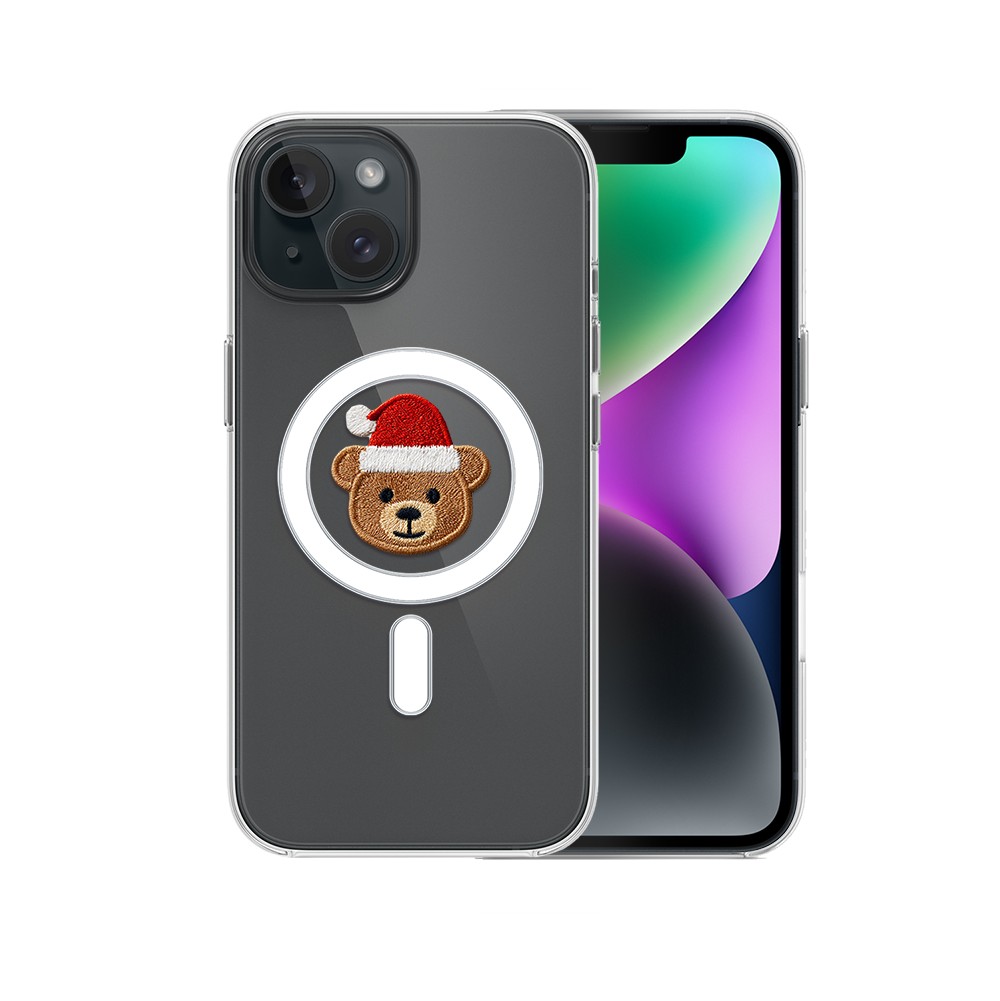 Etui do iPhone 14 Plus z MagSafe, Przytulne święta, Miś świąteczny, przeźroczyste