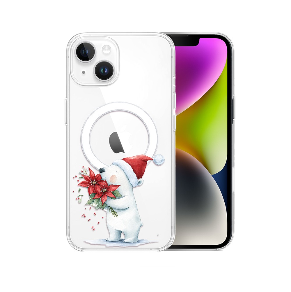Etui do iPhone 14 Plus z MagSafe, Przytulne święta, Miś Mikołajek, przeźroczyste