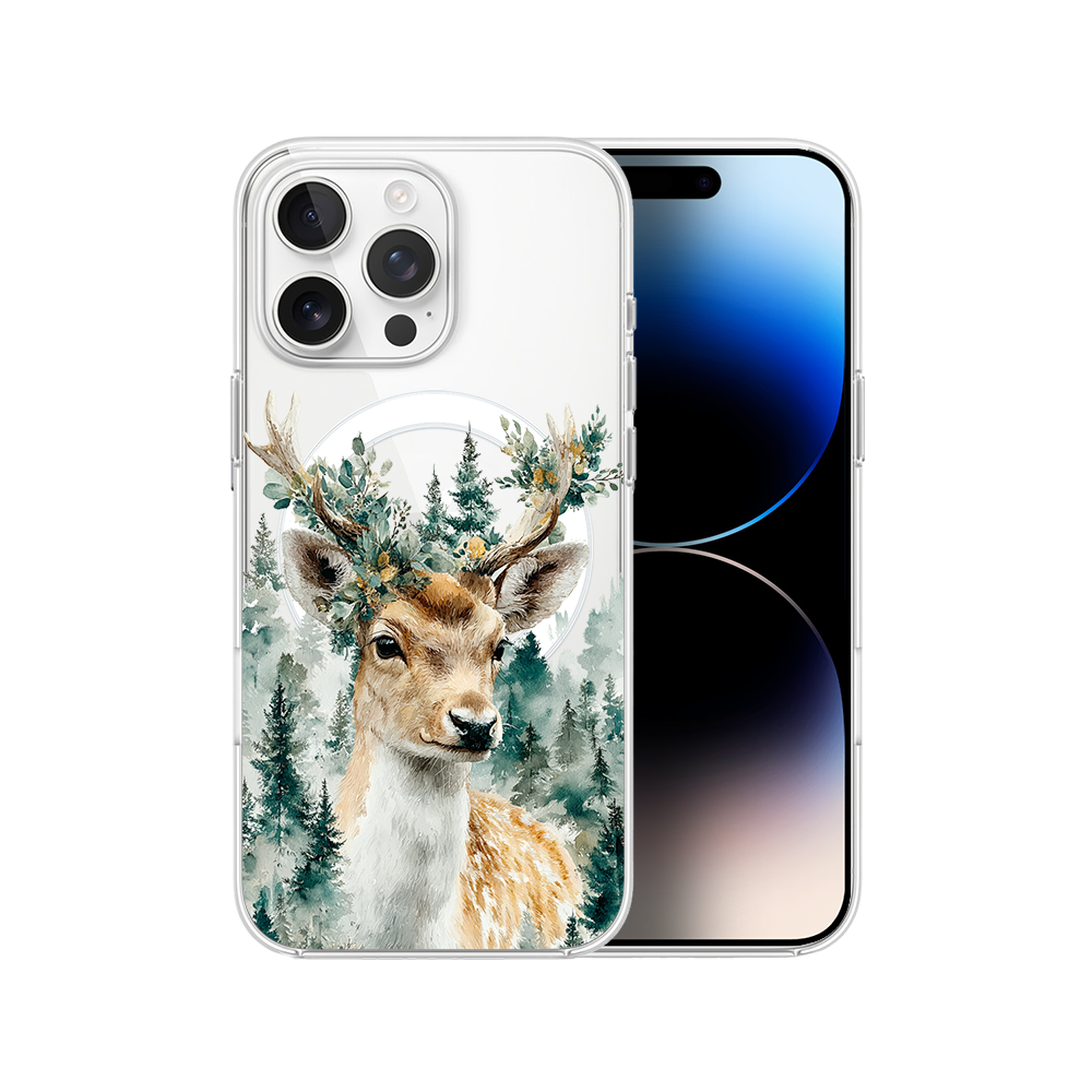Etui do iPhone 14 Pro z MagSafe, Przytulne święta, Leśny Jelonek, przeźroczyste