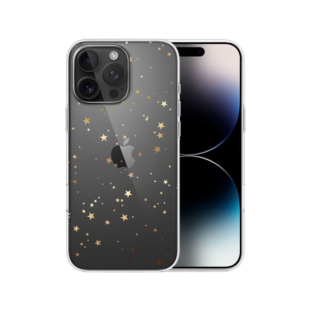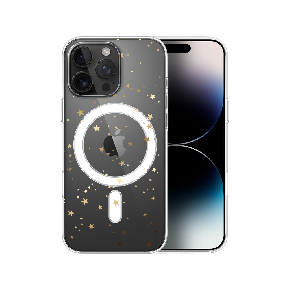 Etui do iPhone 14 Pro z MagSafe, Zimowa Magia, Złote gwiazdki, przeźroczyste