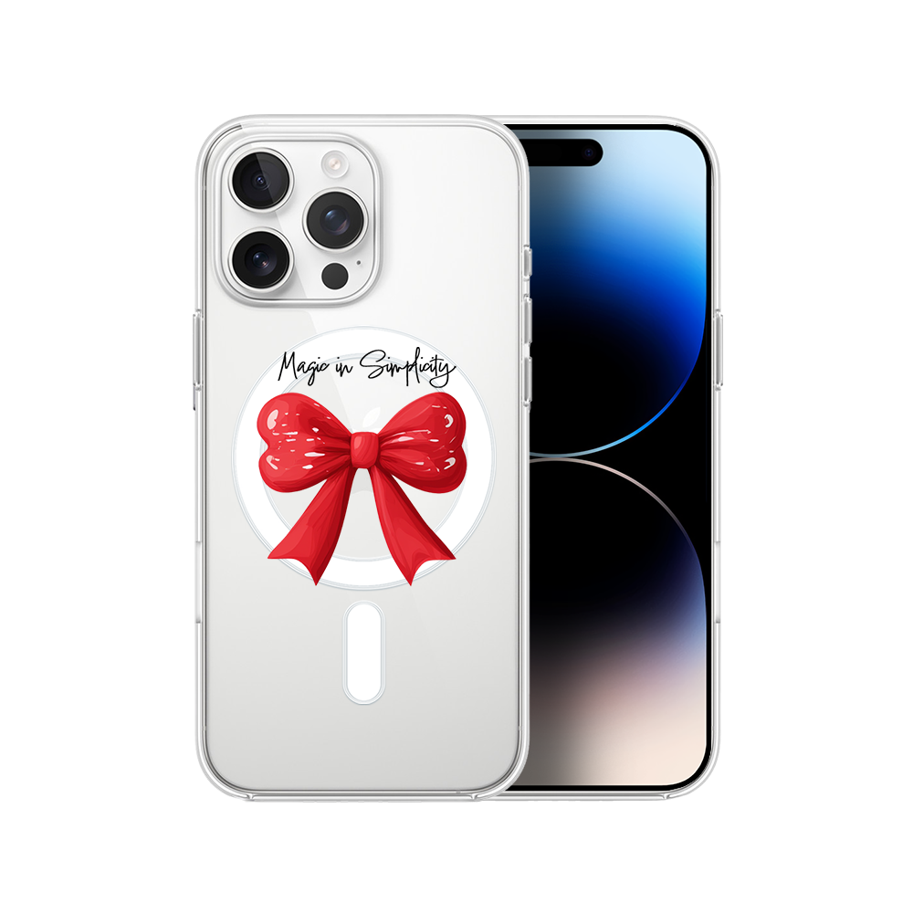 Etui do iPhone 14 Pro z MagSafe, Przytulne święta, Czerwona kokarda, przeźroczyste