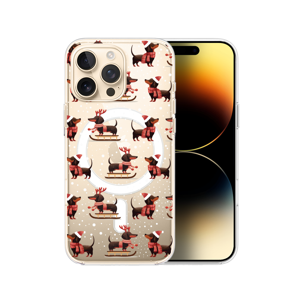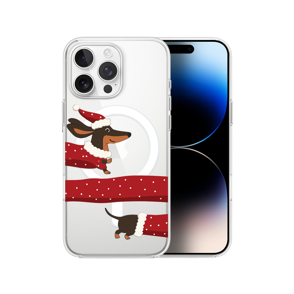Etui do iPhone 14 Pro z MagSafe, Przytulne święta, Świąteczny jamnik, przeźroczyste