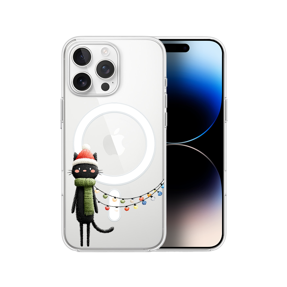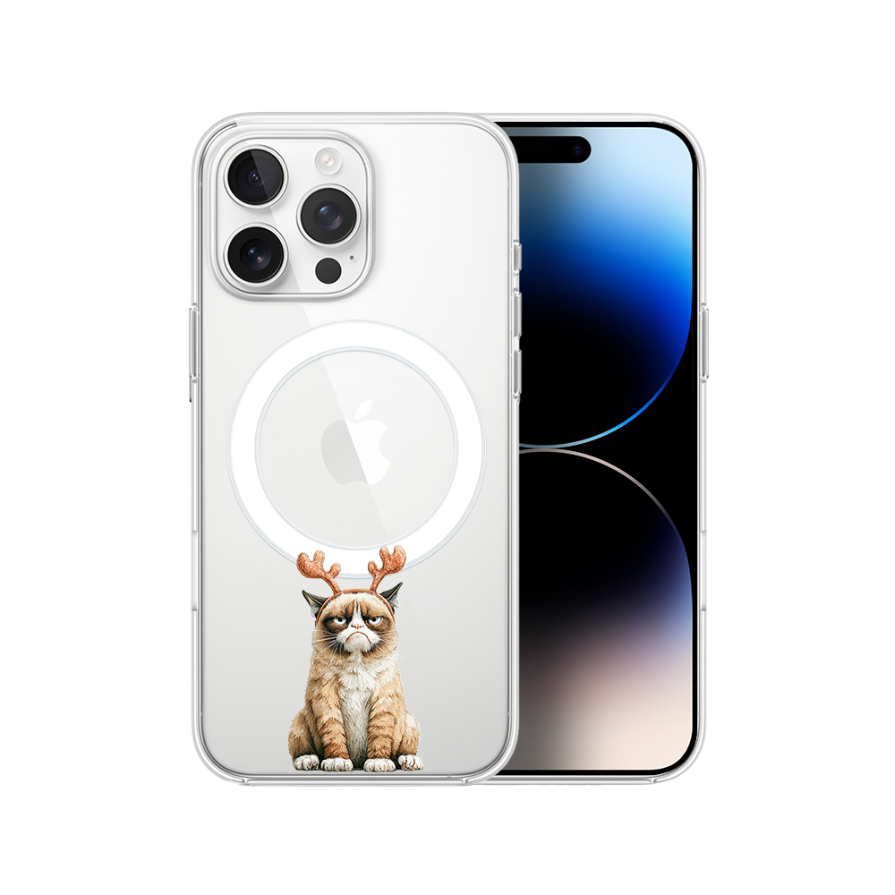 Etui do iPhone 14 Pro z MagSafe, Przytulne święta, Kot który nie chciał być reniferem, przeźroczyste