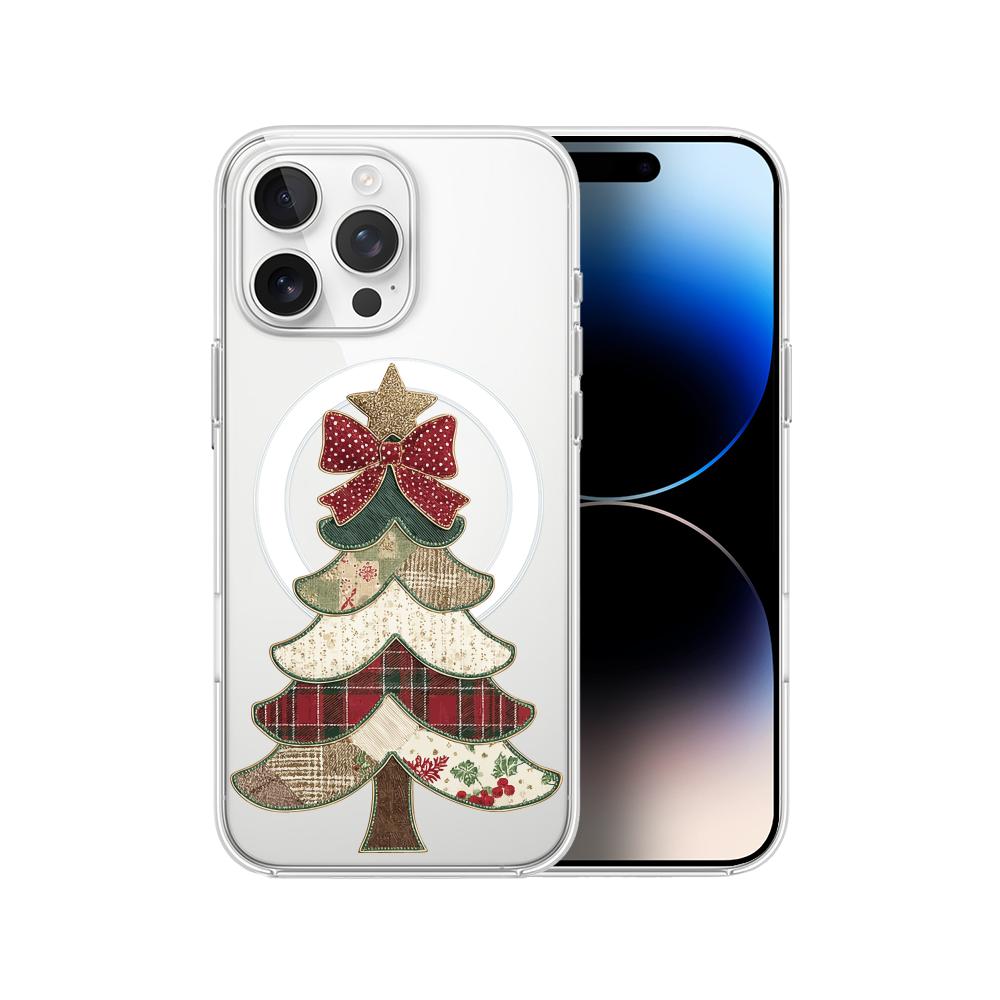 Etui do iPhone 14 Pro z MagSafe, Przytulne święta, Kraciasta choinka, przeźroczyste