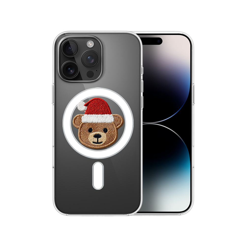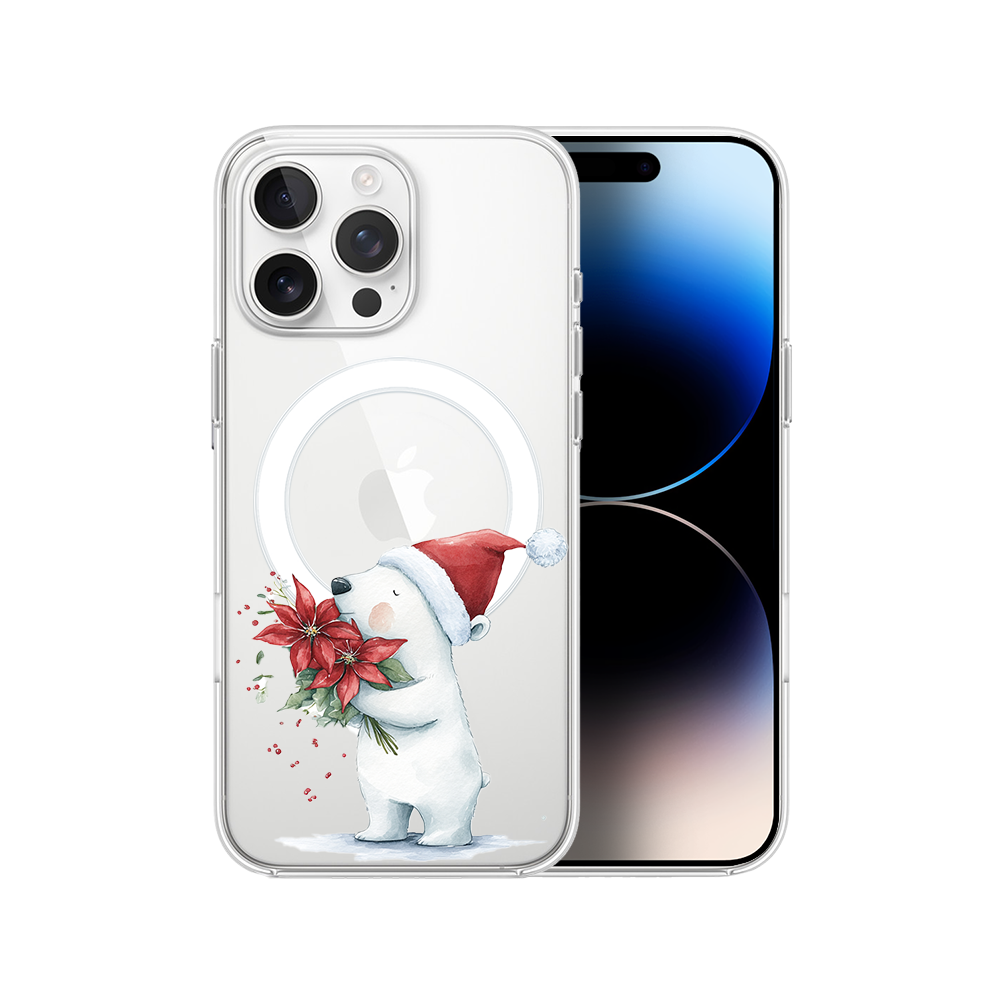 Etui do iPhone 14 Pro z MagSafe, Przytulne święta, Miś Mikołajek, przeźroczyste