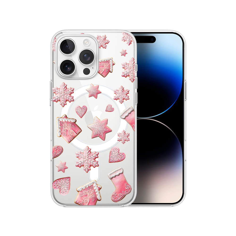 Etui do iPhone 14 Pro z MagSafe, Przytulne święta, Różowe pierniczki, przeźroczyste