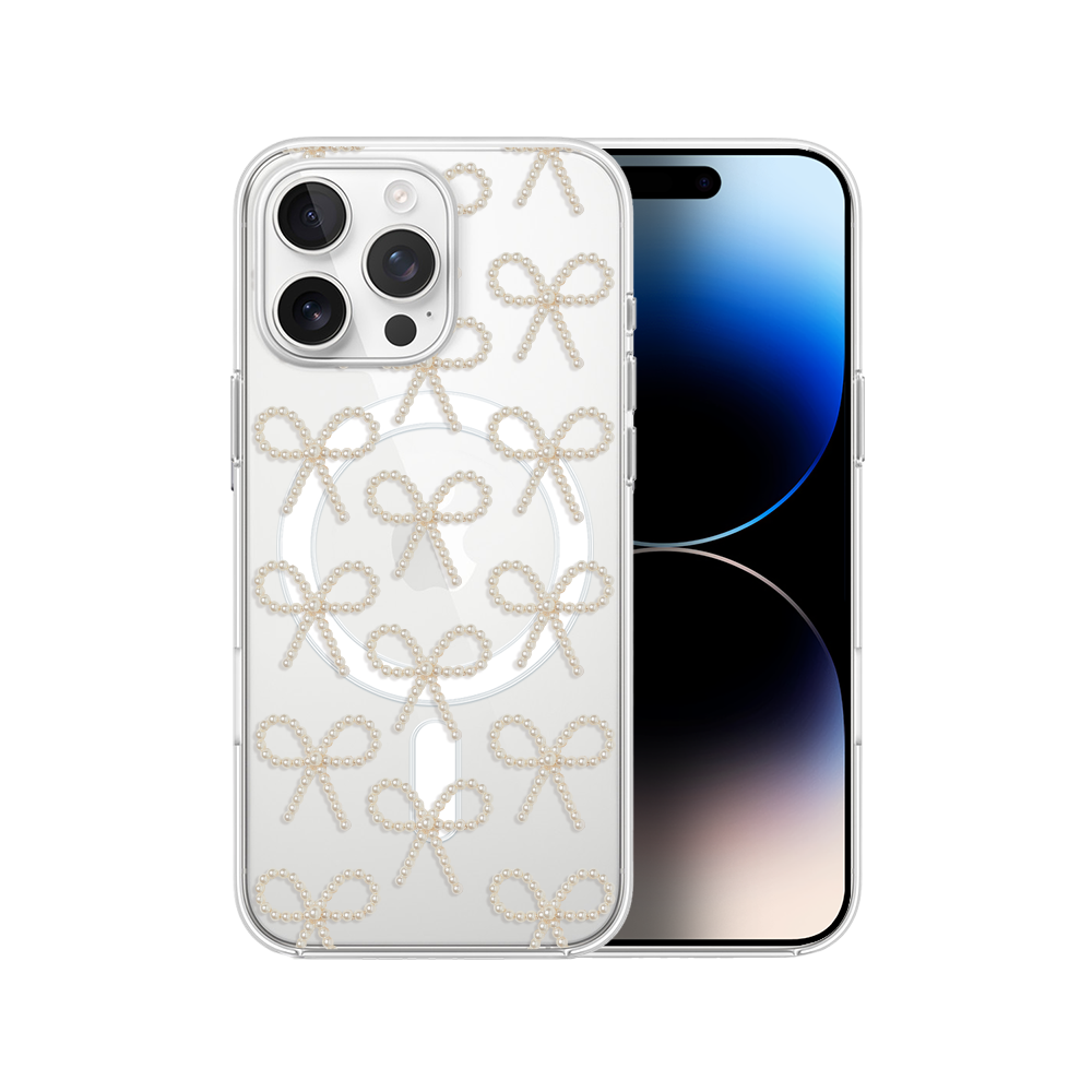 Etui do iPhone 14 Pro IBIZU DropGuard Matt z MagSafe, Zimowa magia, Perłowe kokardki