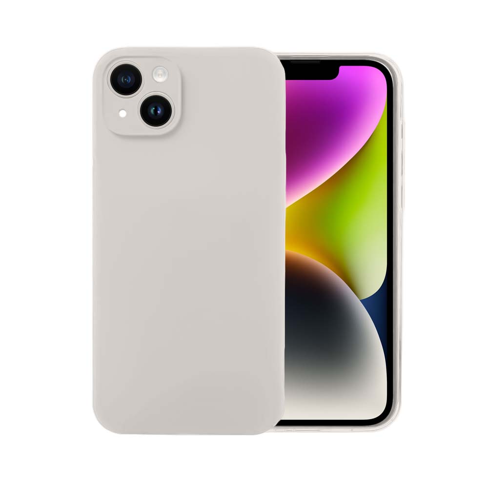 Etui do iPhone 14 silikonowe z mikrofibrą soft touch z osłoną na aparat, kremowe