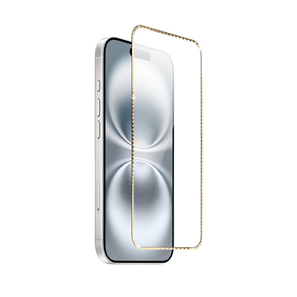 Szkło hartowane 9H do iPhone 16, twarde wzmocnione z metalizowaną złotą ramką