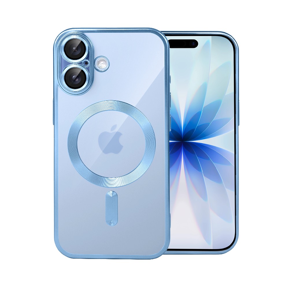 Etui do iPhone 17 MagSafe Luxury Protect przeźroczyste, hybrydowa ochrona kamery, niebieskie