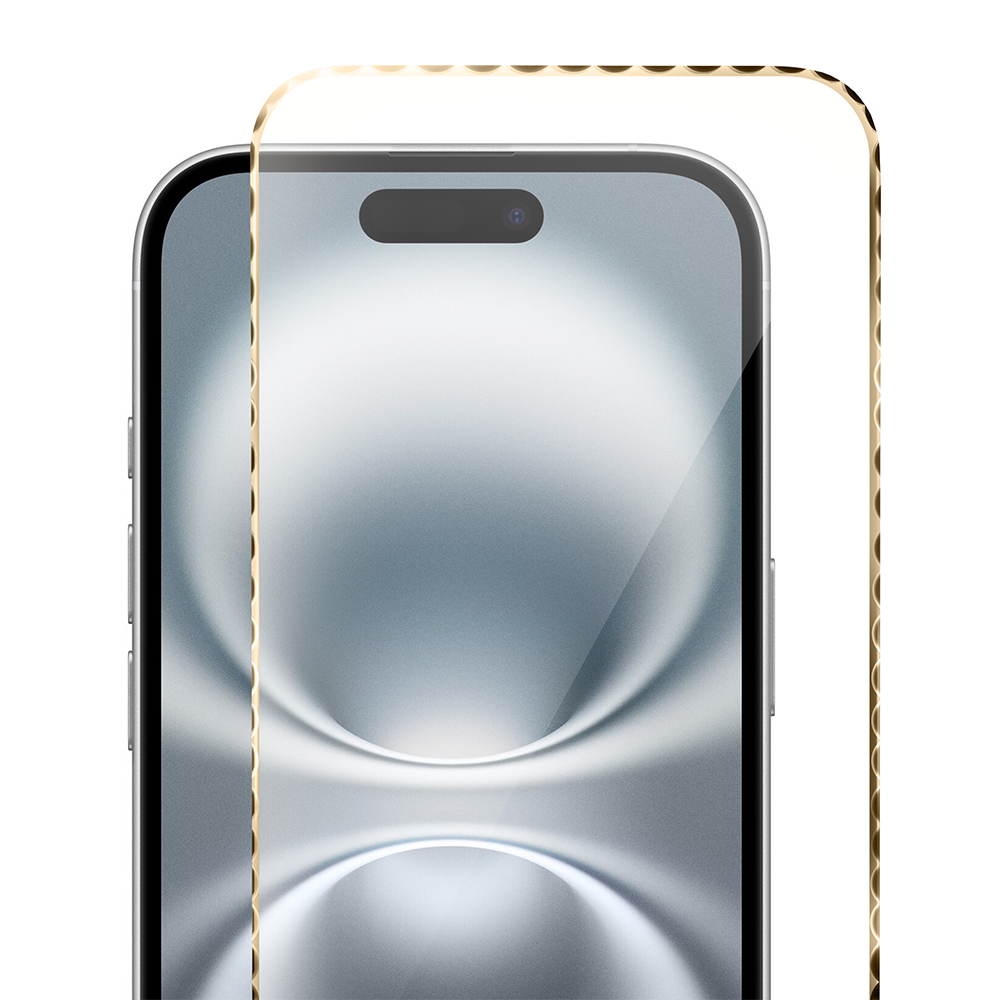 Wyjątkowego uroku nadaje szkłu ozdobna, diamentowa ramka o subtelnym złotym połysku. Jej delikatne, fasetowane krawędzie efektownie odbijają światło, tworząc elegancki i luksusowy wygląd. Zdobienie nie tylko podkreśla styl telefonu, ale również harmonijnie komponuje się z jego konstrukcją. To idealny wybór dla osób ceniących połączenie solidnej ochrony z wyrafinowanym designem.