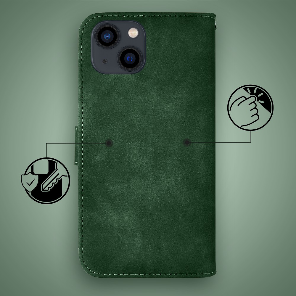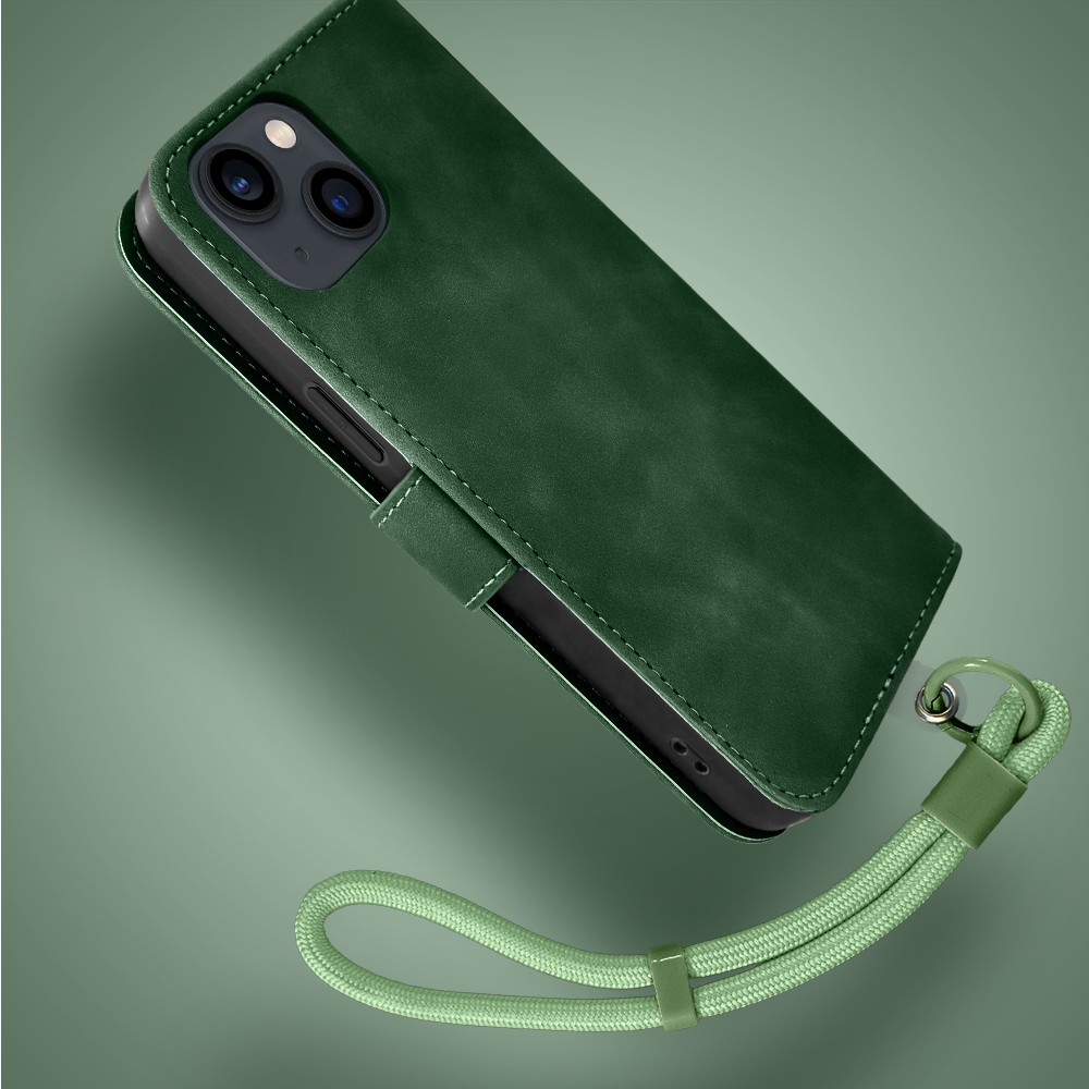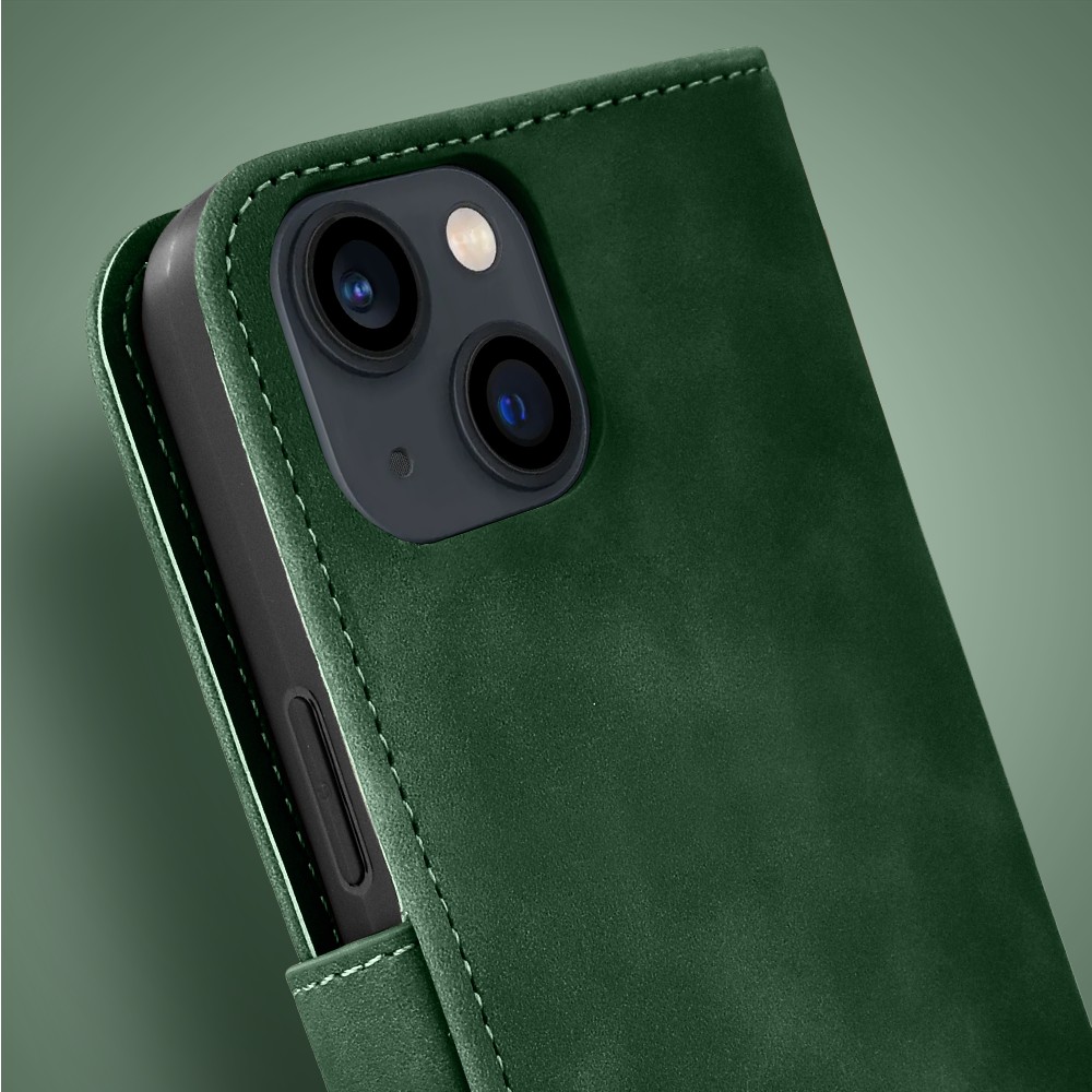 Etui do iPhone 13 książkowe Velvet Touch, aksamitne, portfelowe z zamknięciem, zielone (1)