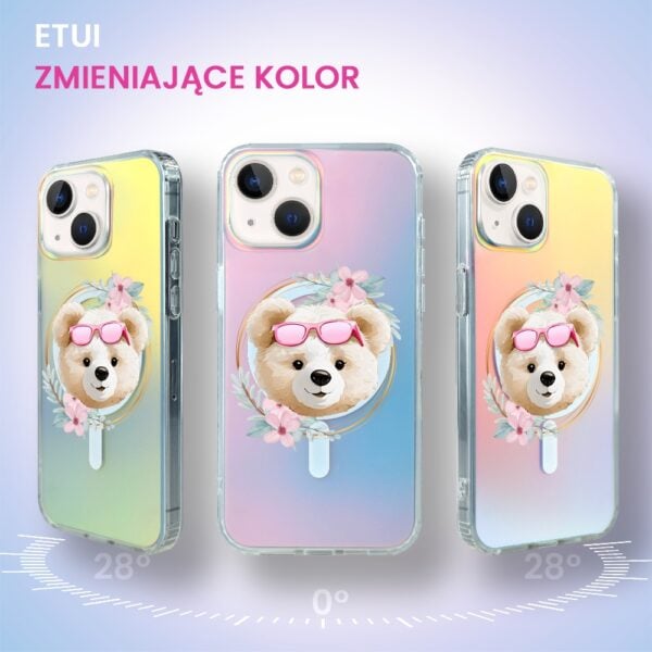 Etui do iPhone 13 MagSafe Bear With Me, Flower Queen, miś z kwiatami, zmieniające kolor