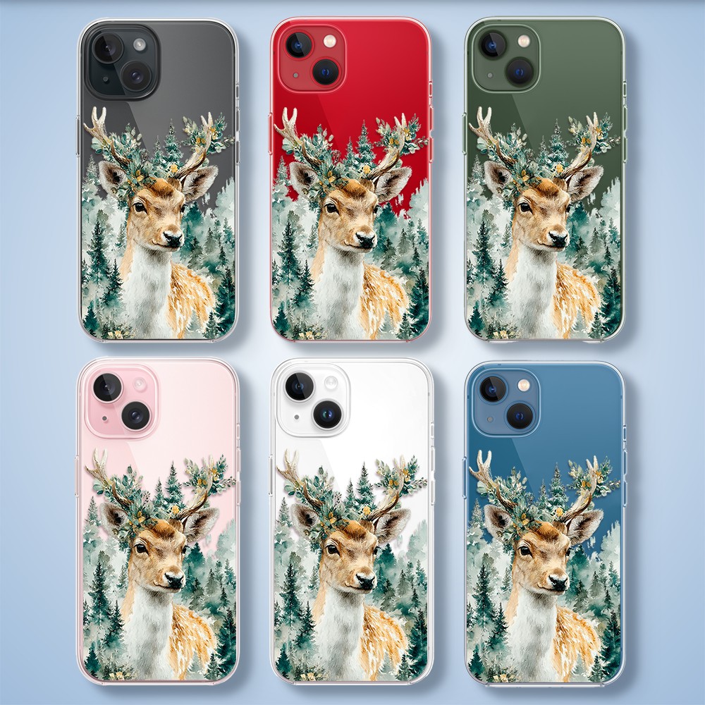 Etui do iPhone 13, Przytulne święta, Leśny Jelonek, przeźroczyste1