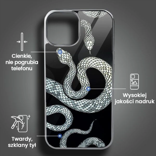 Etui do iPhone 13, Elite Glass, szklany tył, węże ze srebrem, srebrne