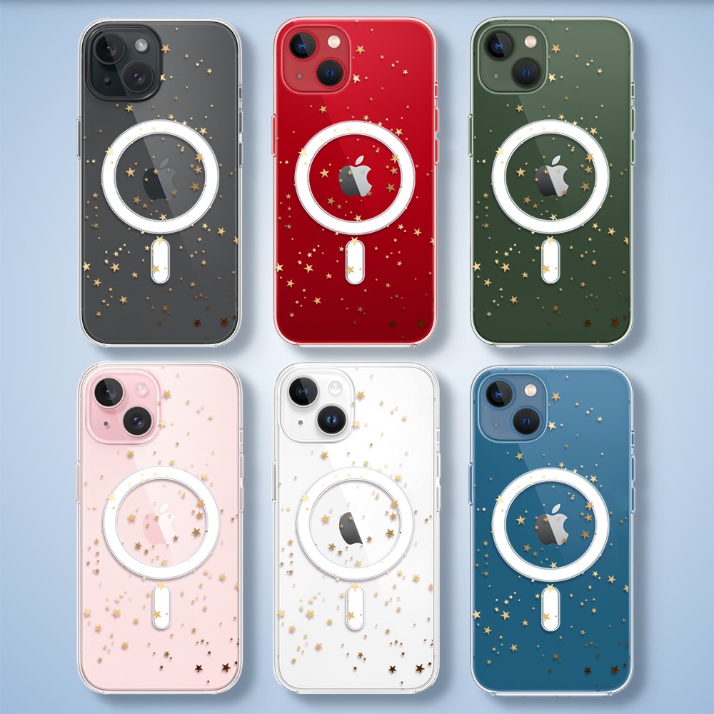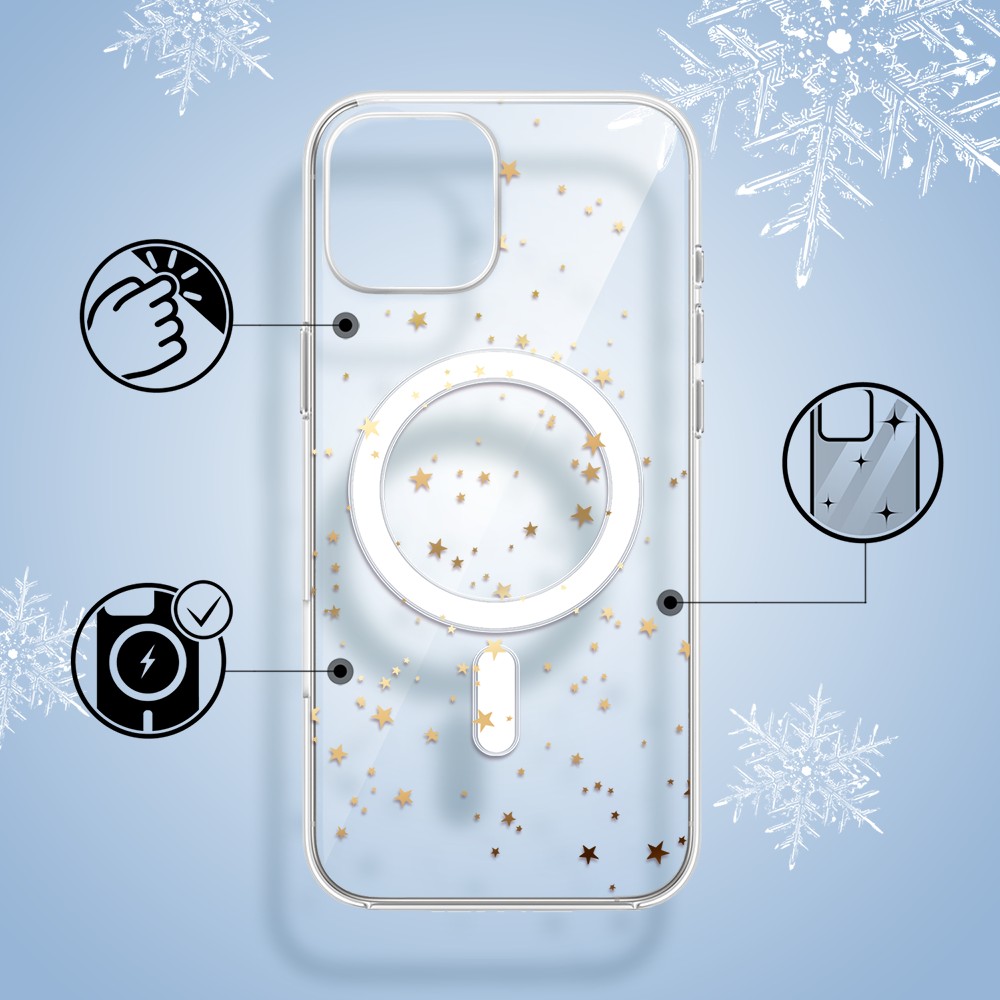 Etui do iPhone 13 z MagSafe, Zimowa Magia, Złote gwiazdki, przeźroczyste2