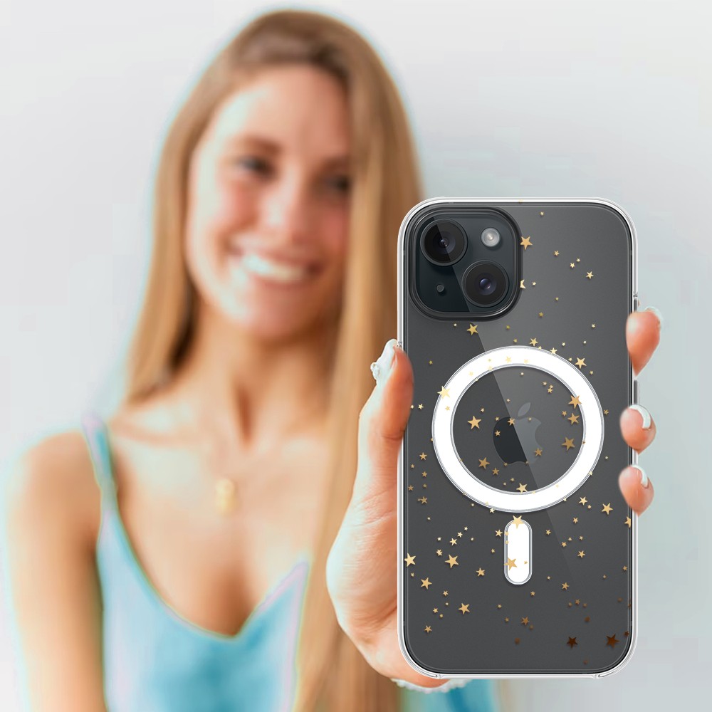 Etui do iPhone 13 z MagSafe, Zimowa Magia, Złote gwiazdki, przeźroczyste