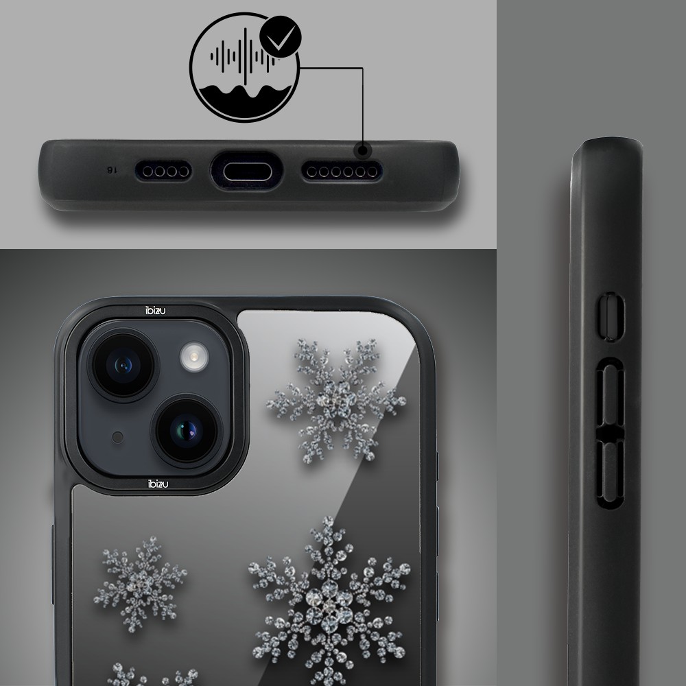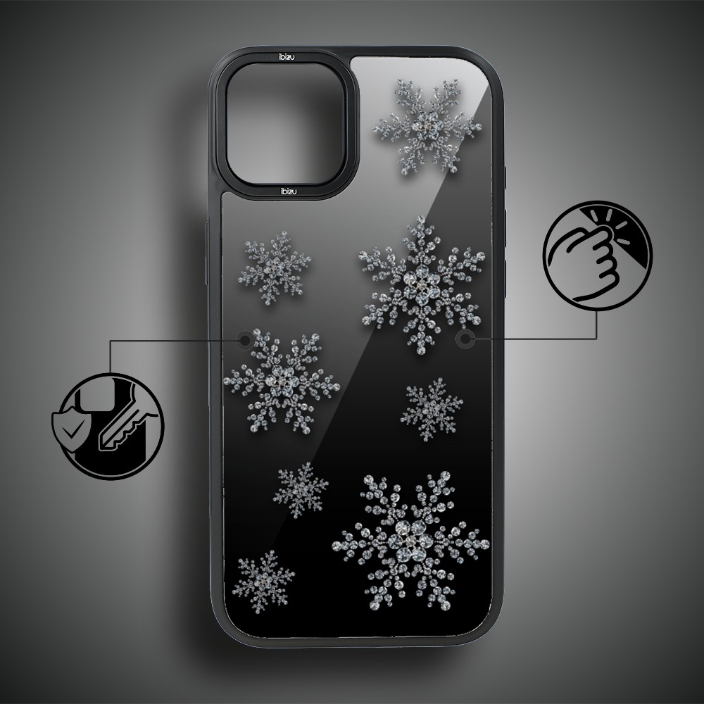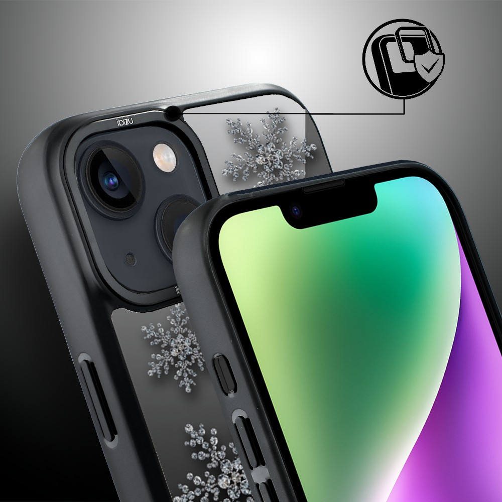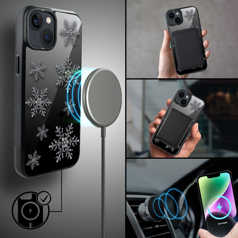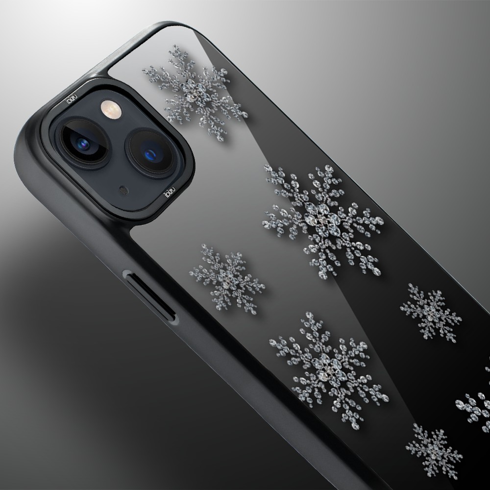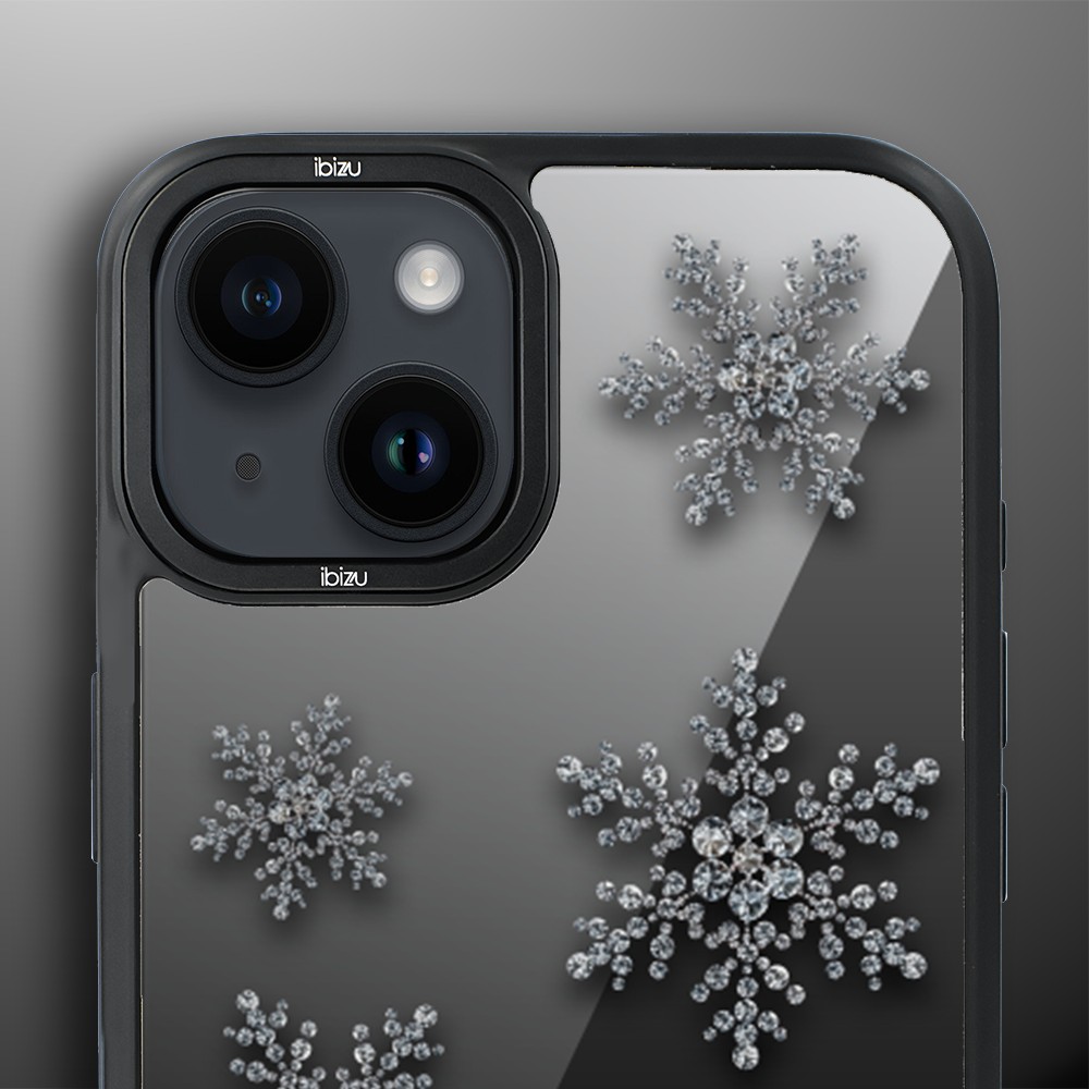 Etui do iPhone 14 IBIZU DropGuard Matt z MagSafe, Zimowa magia, Płatki śniegu na czarnym lustrze