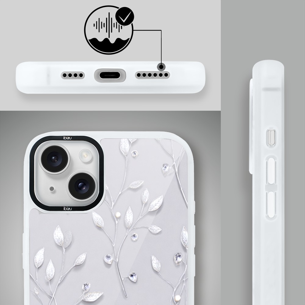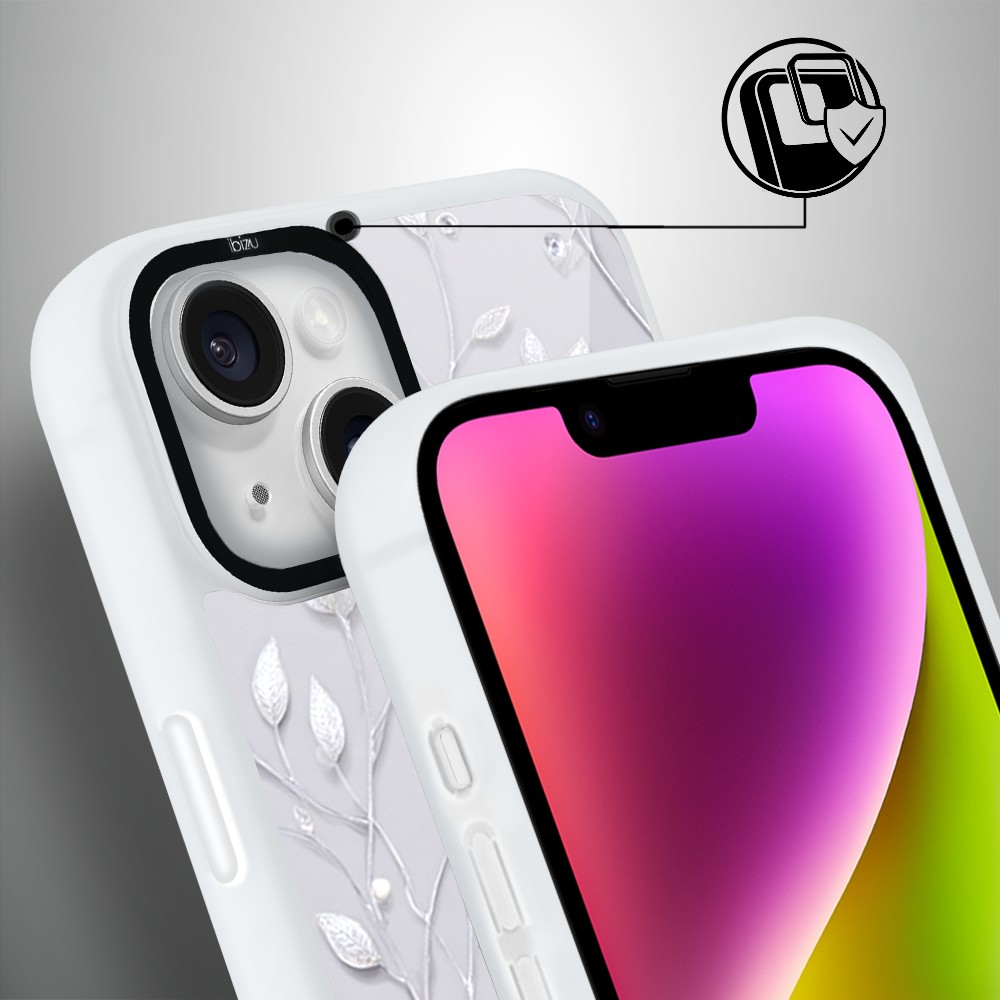Etui do iPhone 14 IBIZU DropGuard Matt z MagSafe, Zimowa magia, Lodowe kwiaty, biała ramka (8)