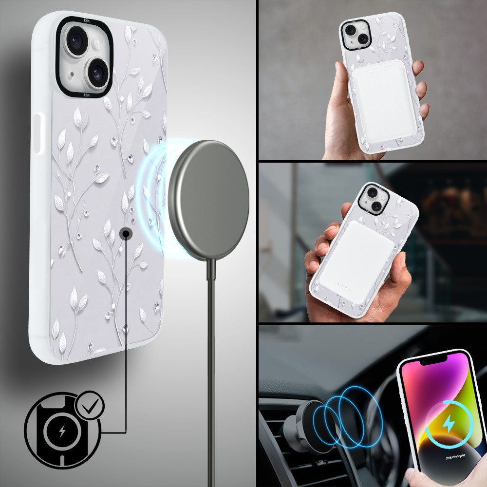Etui do iPhone 14 IBIZU DropGuard Matt z MagSafe, Zimowa magia, Lodowe kwiaty, biała ramka (2)
