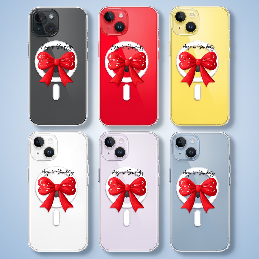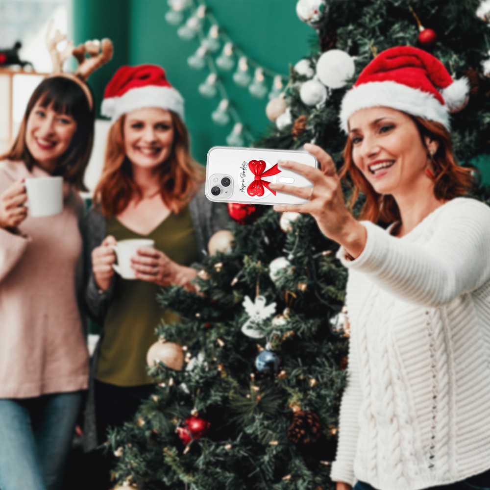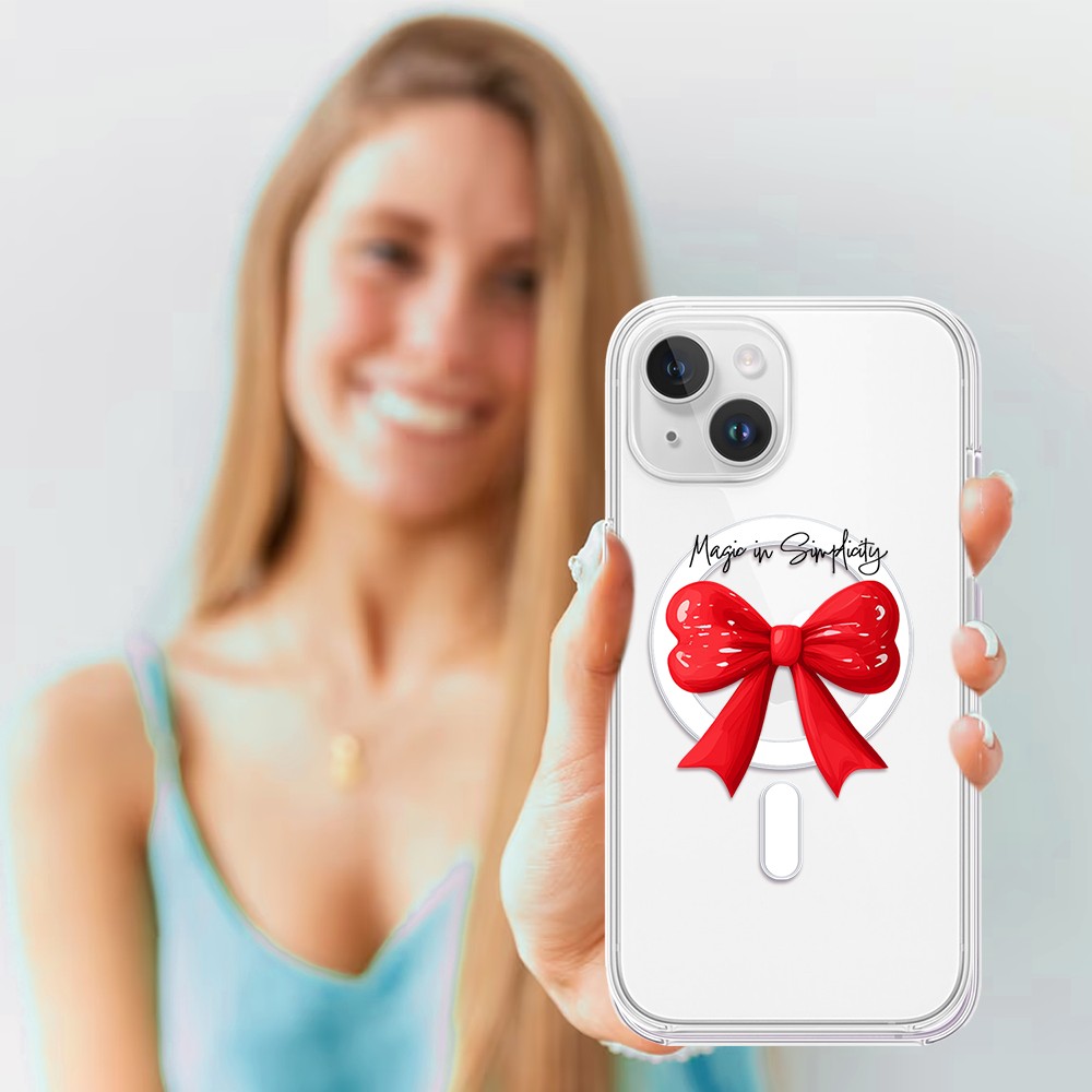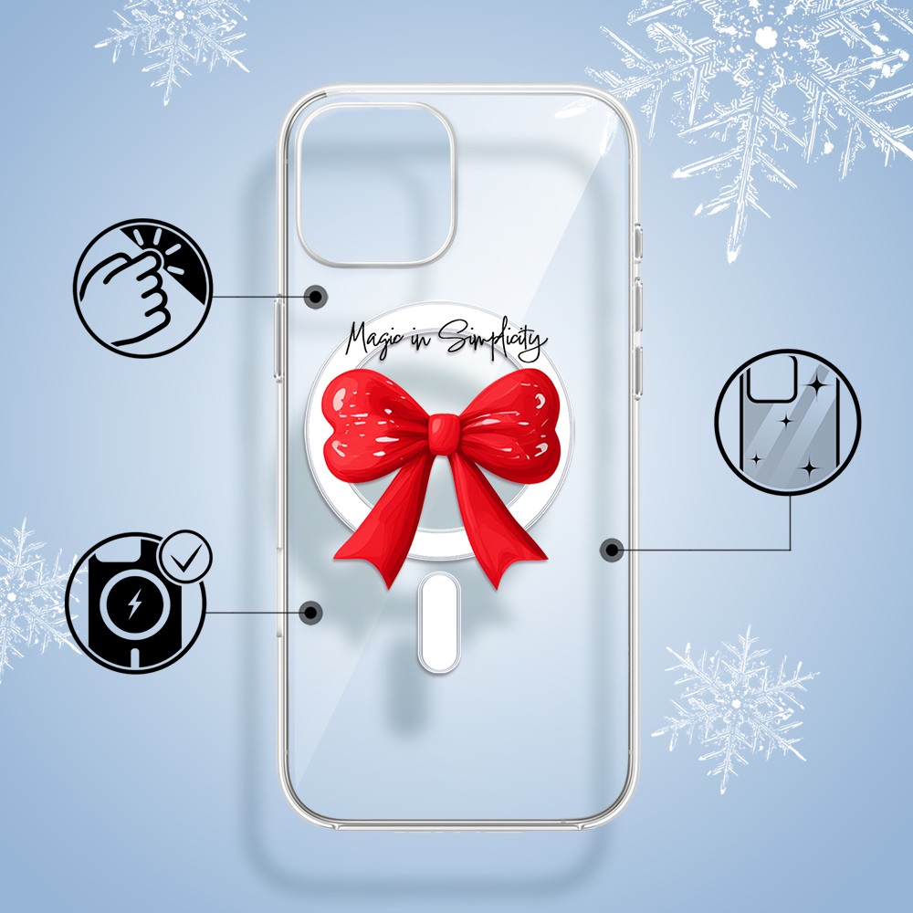Etuitelefon.pl > Akcesoria do iphone 14 plus > Etui iphone 14 plus > Etui do iphone 14 plus z magsafe, przytulne święta, czerwona kokarda, przeźroczyste