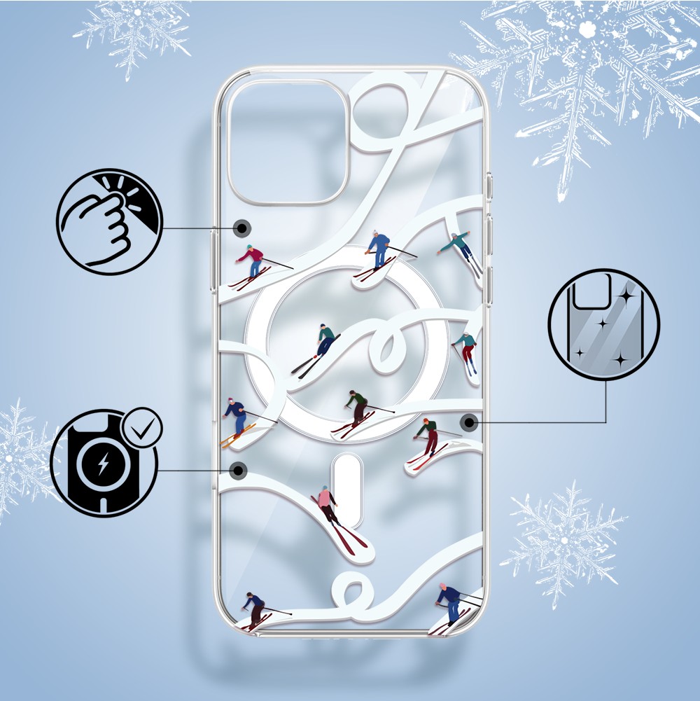 Etui do iPhone 14 z MagSafe, Zimowa Magia, Narciarskie wiraże, przeźroczyste1
