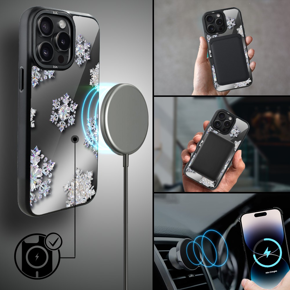 Etui do iPhone 14 Pro IBIZU DropGuard Matt z MagSafe, Zimowa magia, Królewskie płatki śniegu
