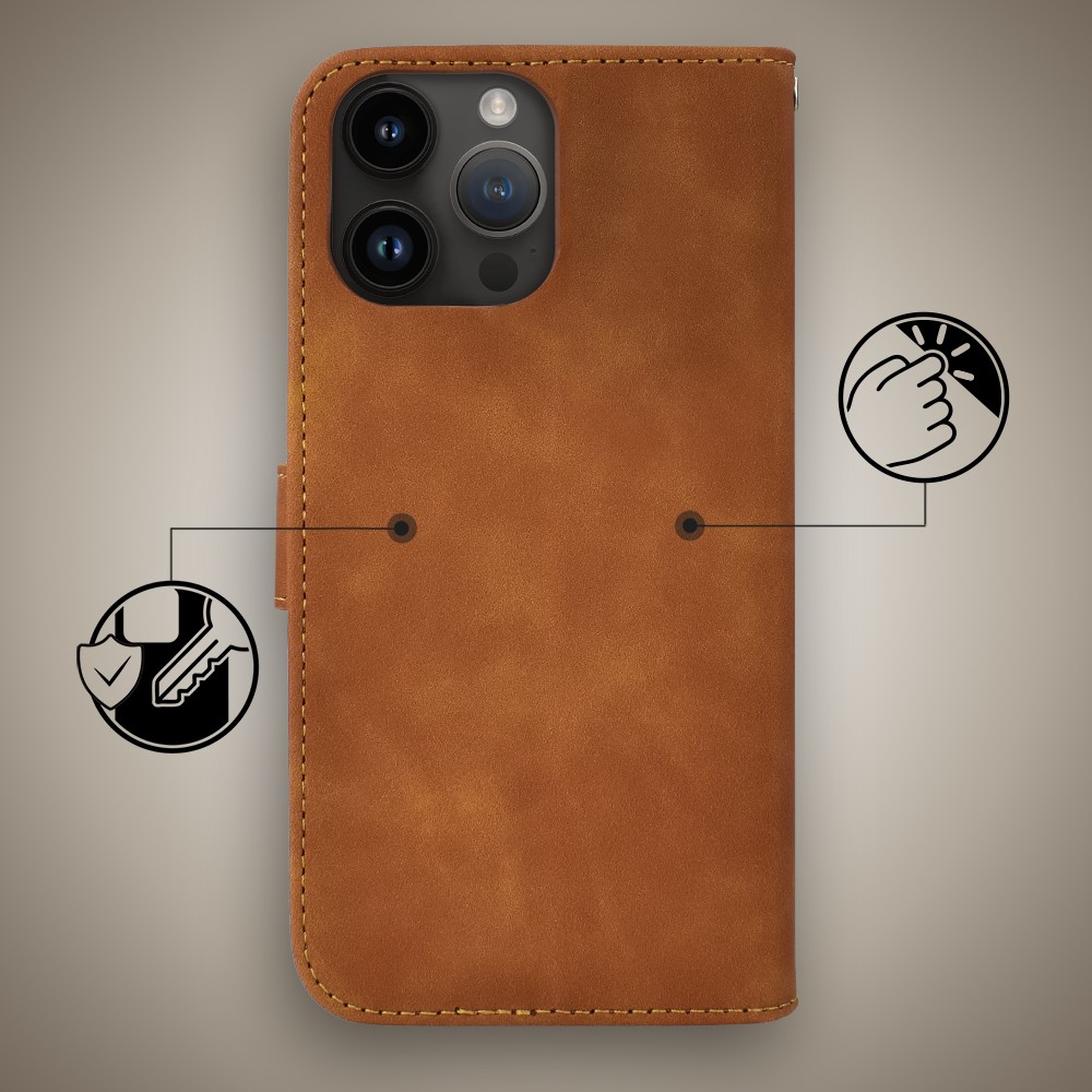 Etui do iPhone 14 Pro książkowe Velvet Touch, aksamitne, portfelowe z zamknięciem, brązowe (1)