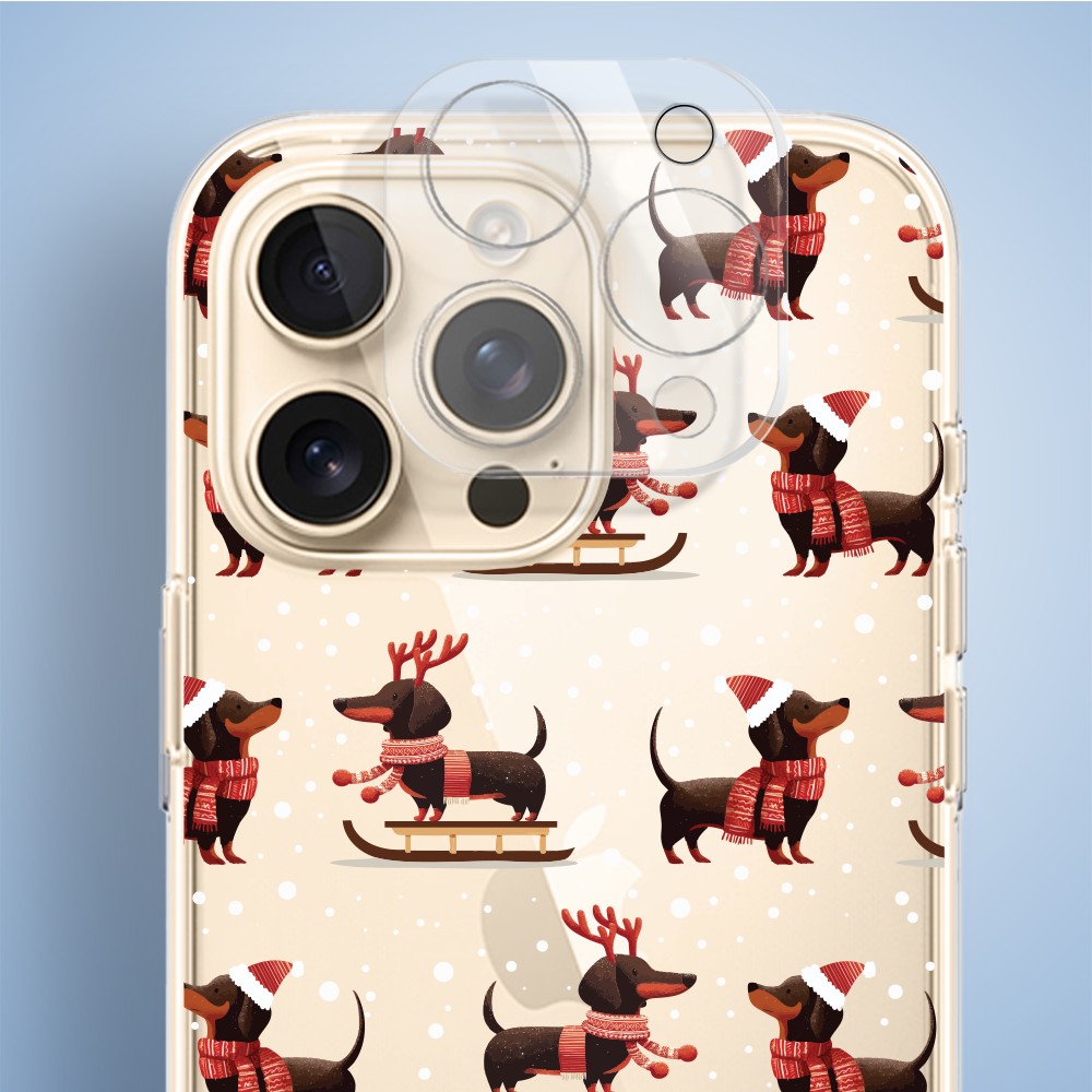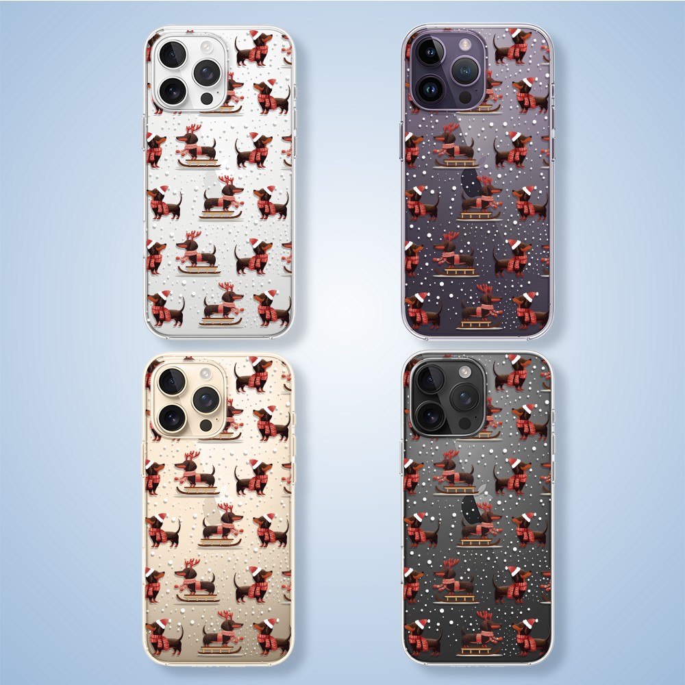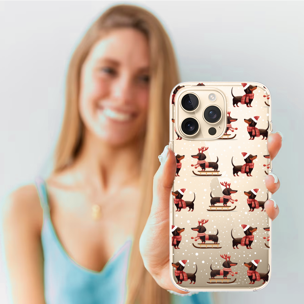 Etuitelefon.pl > Akcesoria do iphone 14 pro > Etui iphone 14 pro > Etui do iphone 14 pro, przytulne święta, jamniki na saniach, przeźroczyste