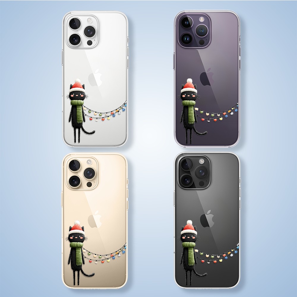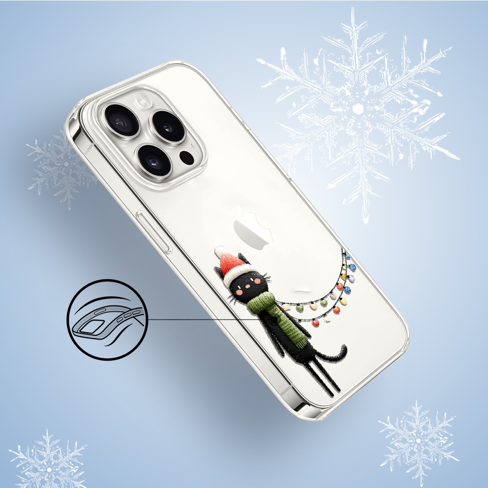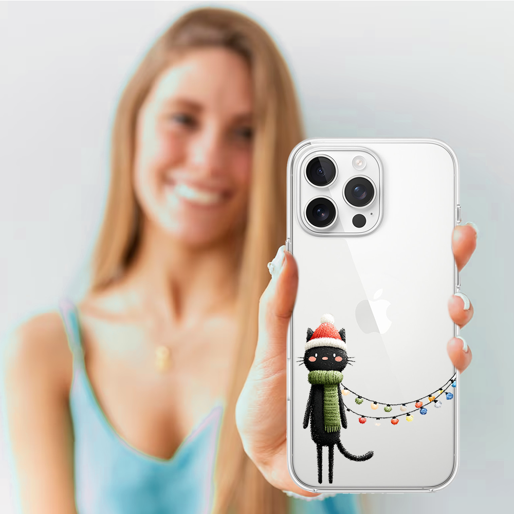 Etuitelefon.pl > Akcesoria do iphone 14 pro > Etui iphone 14 pro > Etui do iphone 14 pro, przytulne święta, kot przebrany za elfa, przeźroczyste
