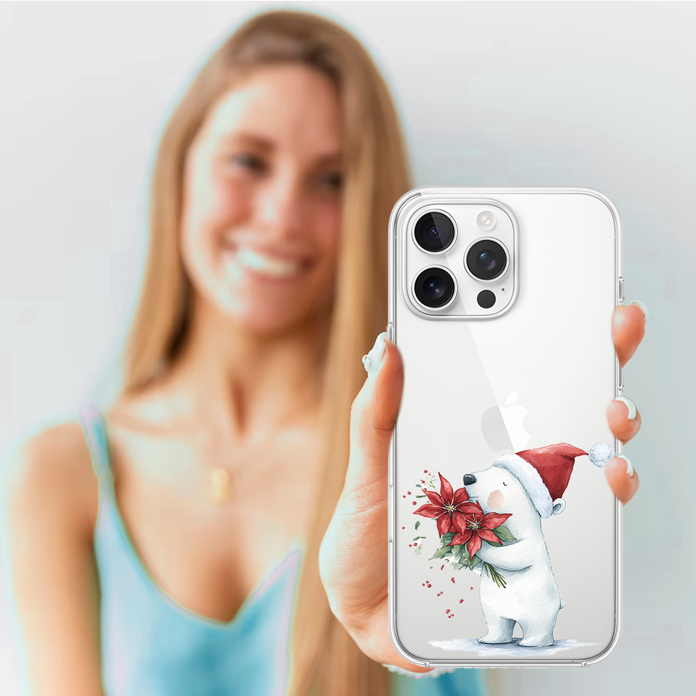 Etui do iPhone 14 Pro, Przytulne święta, Miś świąteczny, przeźroczyste1