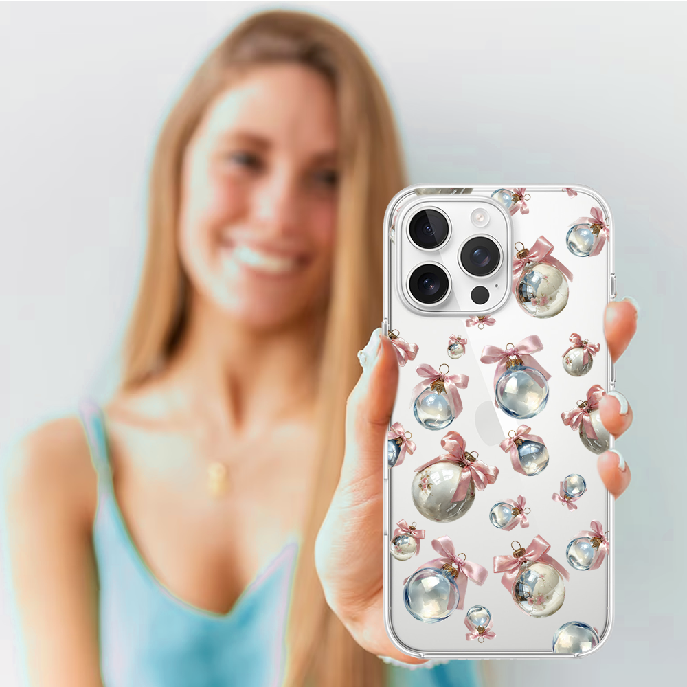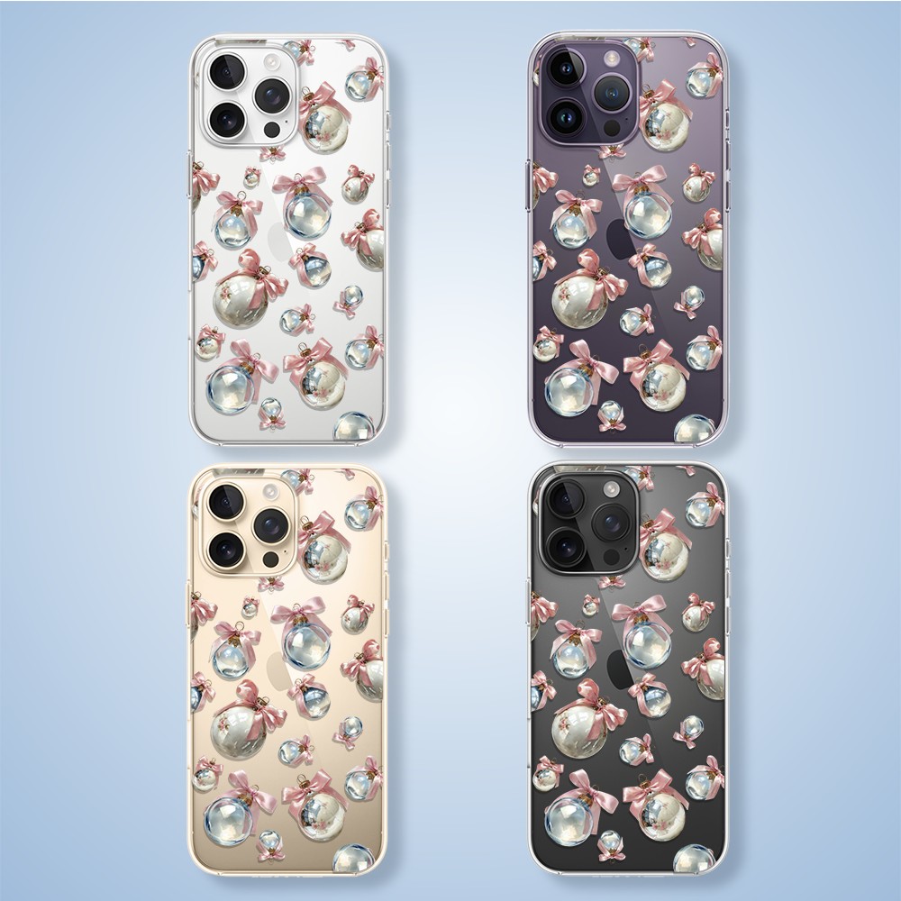 Etuitelefon.pl > Akcesoria do iphone 14 pro > Etui iphone 14 pro > Etui do iphone 14 pro, przytulne święta, pastelowe bombki, przeźroczyste