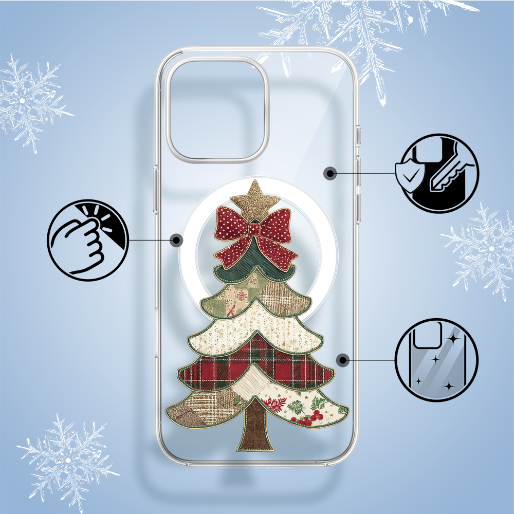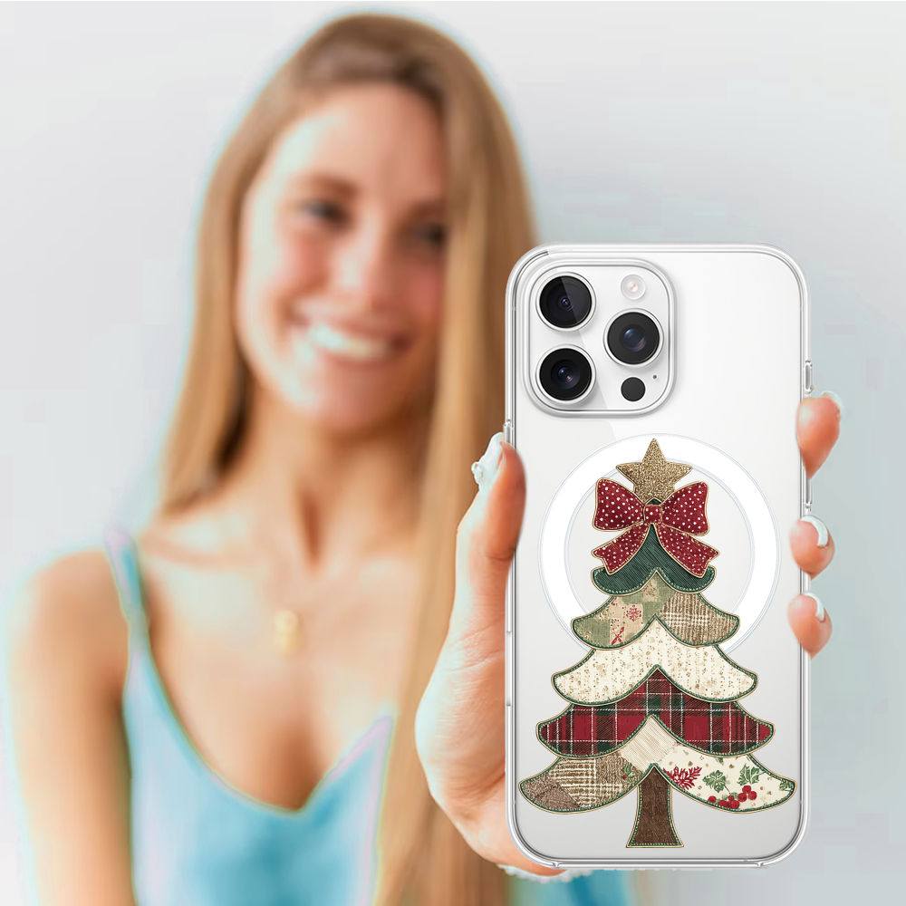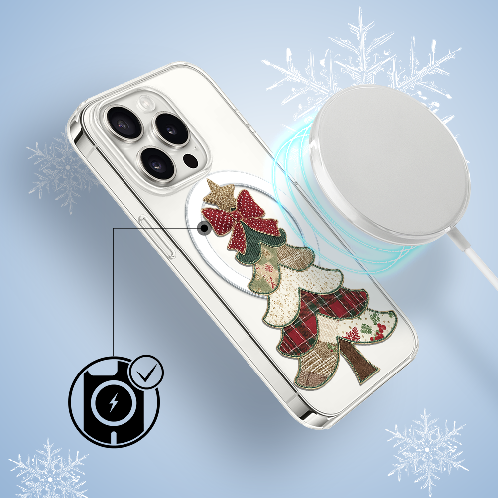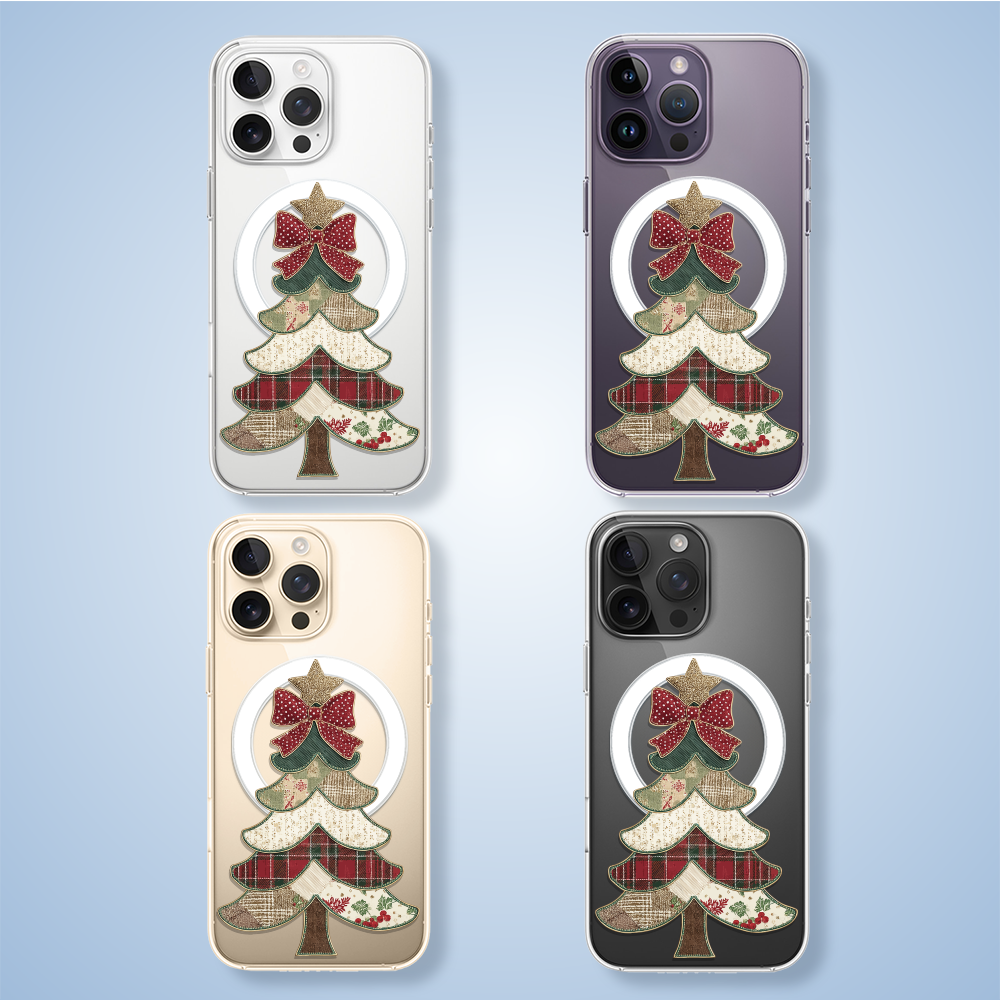 Etuitelefon.pl > Akcesoria do iphone 14 pro > Etui iphone 14 pro > Etui do iphone 14 pro z magsafe, przytulne święta, kraciasta choinka, przeźroczyste
