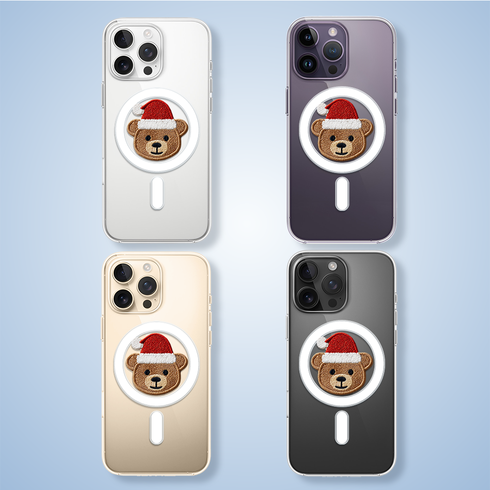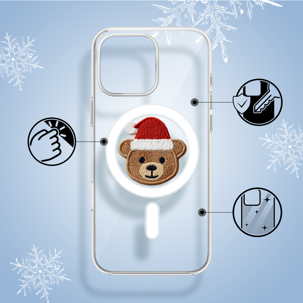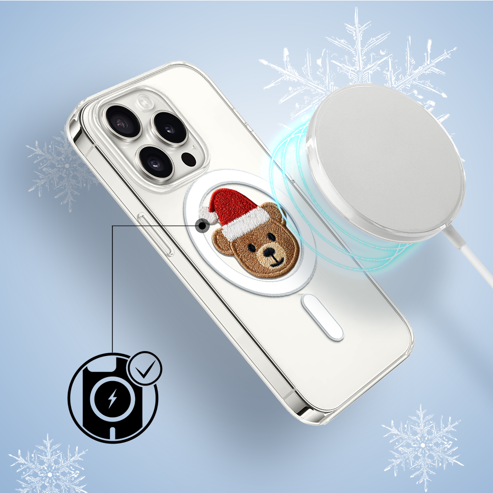 Etuitelefon.pl > Akcesoria do iphone 14 pro > Etui iphone 14 pro > Etui do iphone 14 pro z magsafe, przytulne święta, miś mikołajek, przeźroczyste