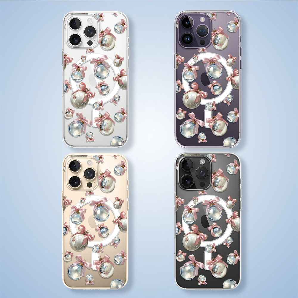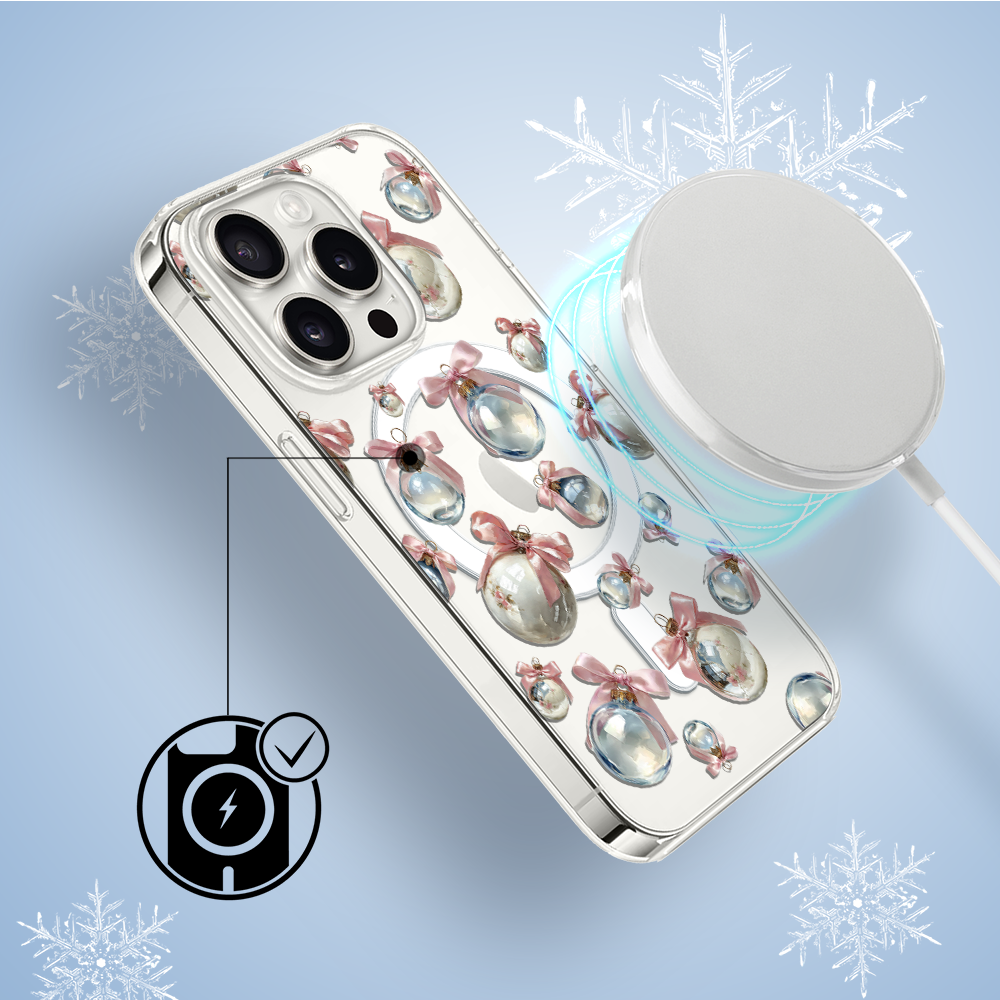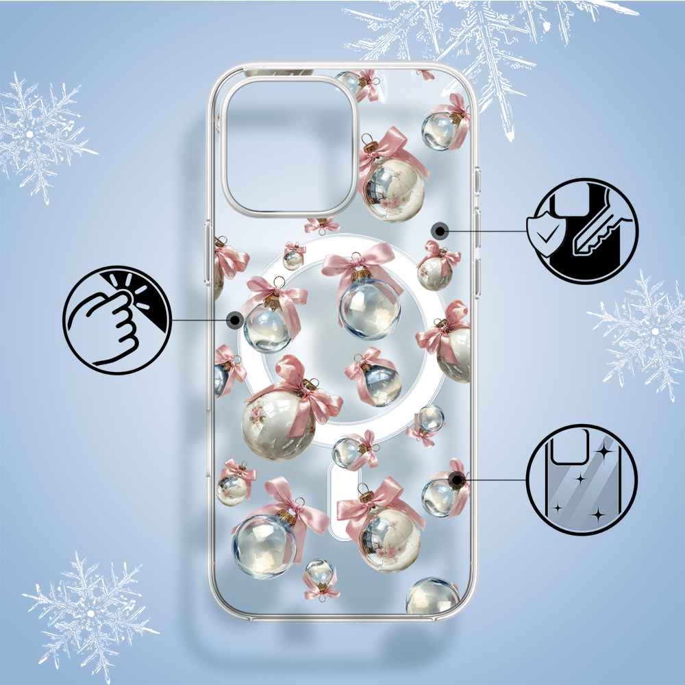 Etuitelefon.pl > Akcesoria do iphone 14 pro > Etui iphone 14 pro > Etui do iphone 14 pro z magsafe, przytulne święta, pastelowe bombki, przeźroczyste