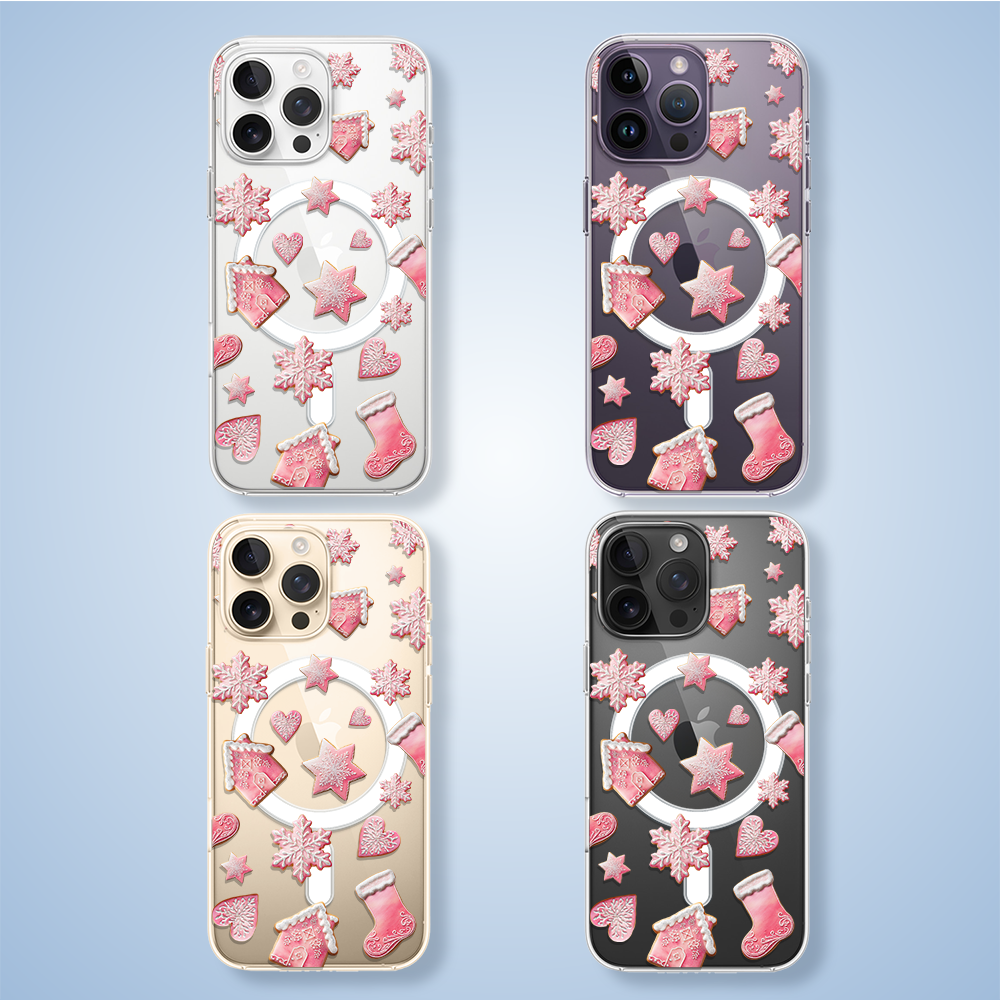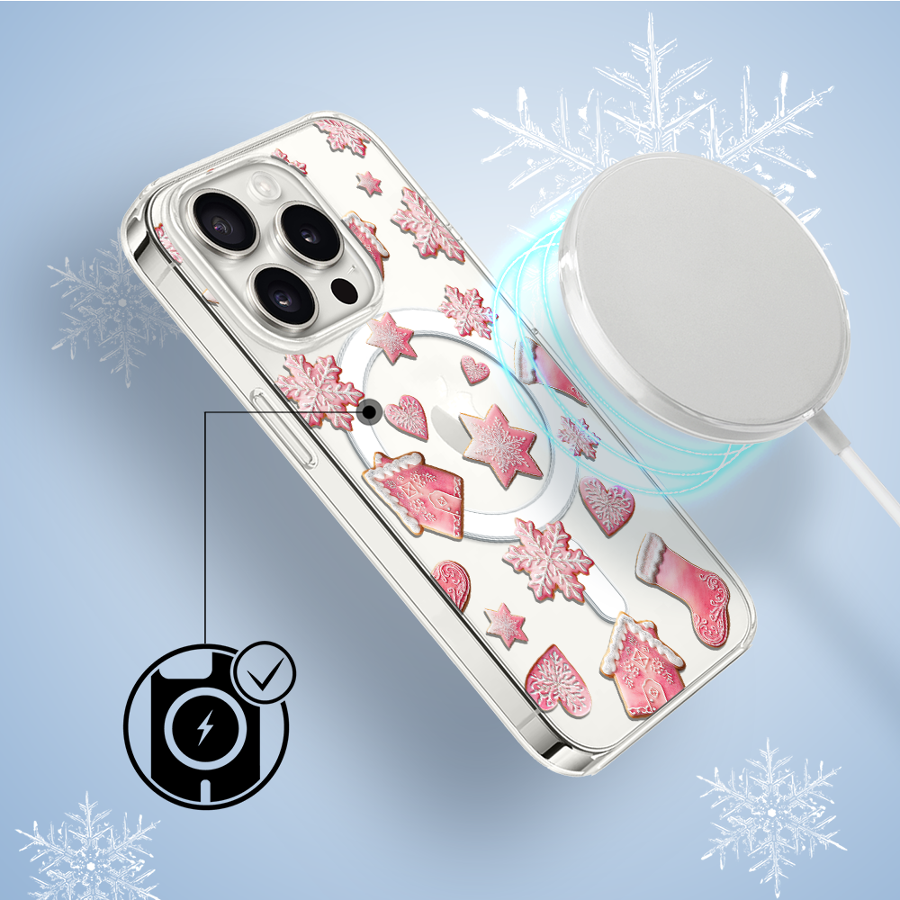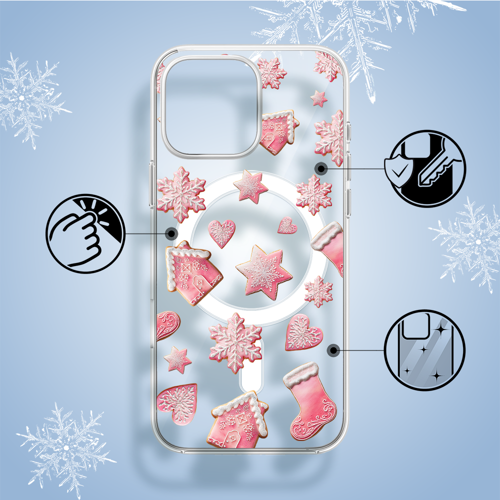 Etui do iPhone 14 Pro z MagSafe, Przytulne święta, Różowe pierniczki, przeźroczyste1