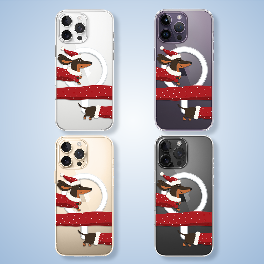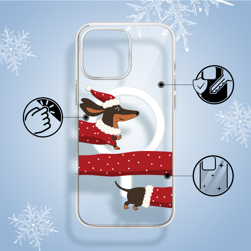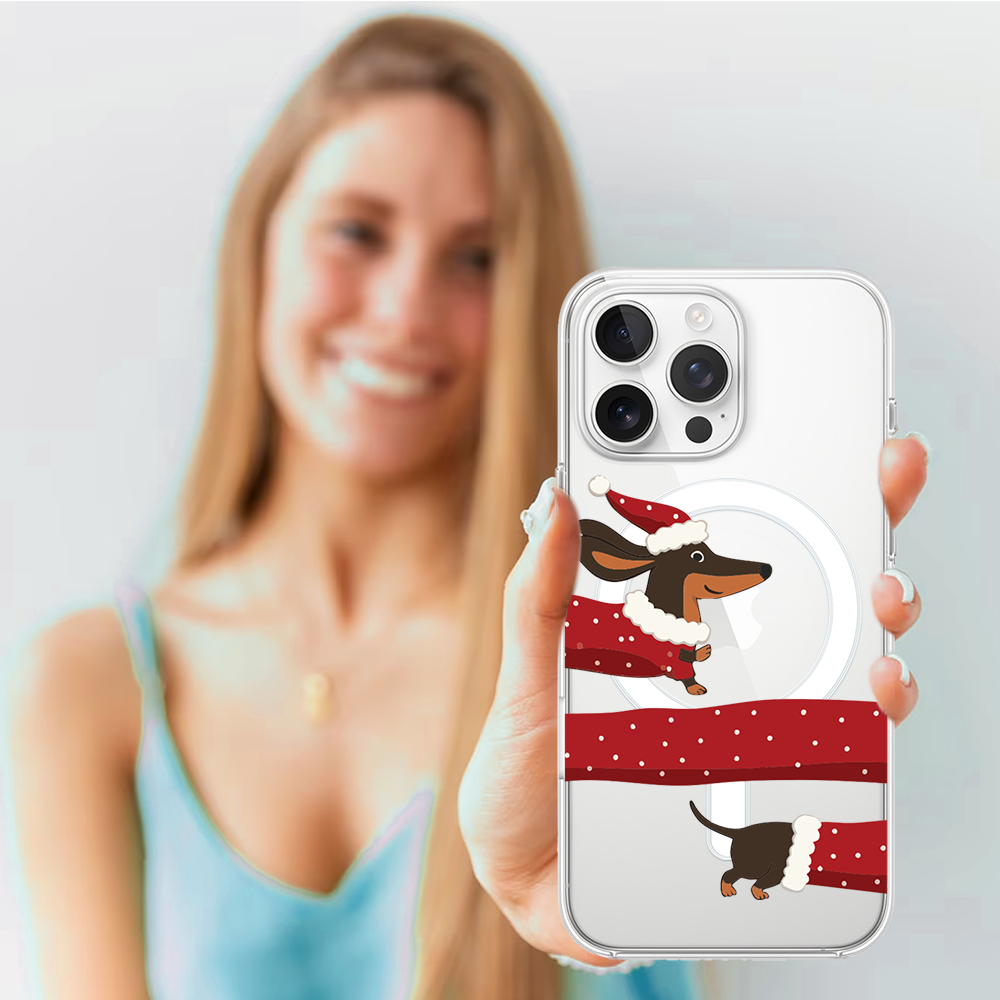 Etuitelefon.pl > Akcesoria do iphone 14 pro > Etui iphone 14 pro > Etui do iphone 14 pro z magsafe, przytulne święta, Świąteczny jamnik, przeźroczyste