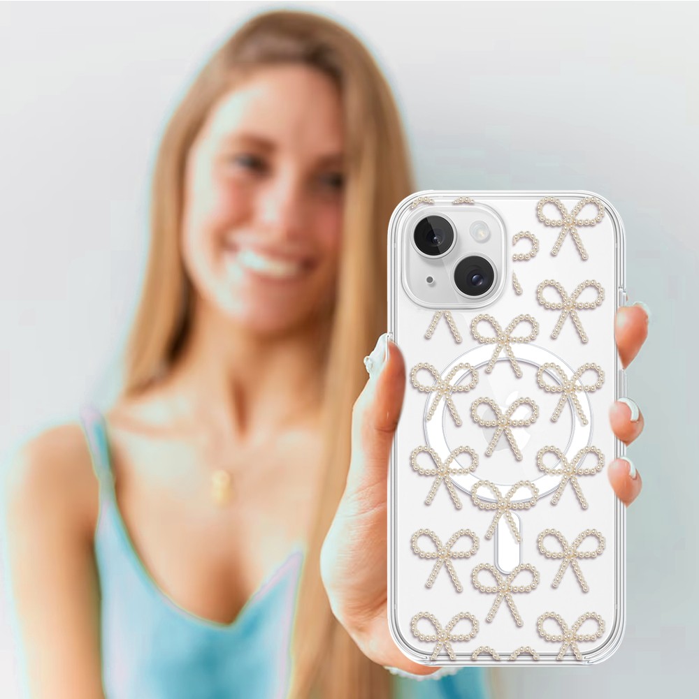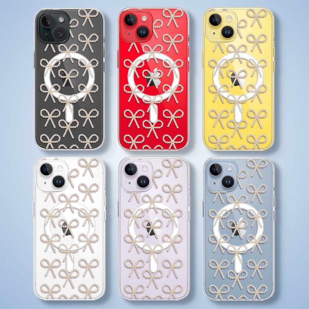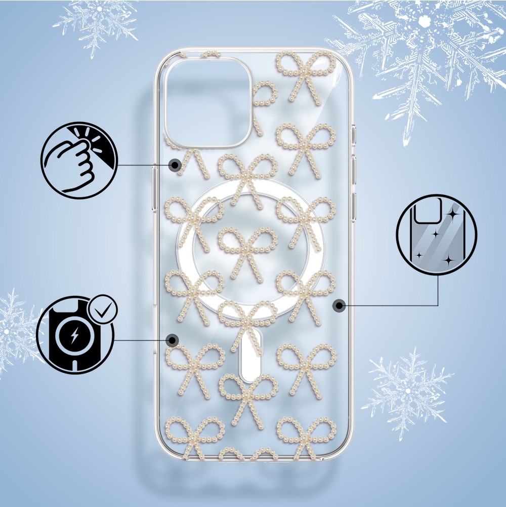 Etuitelefon.pl > Akcesoria do iphone 14 > Etui iphone 14 > Etui do iphone 14 z magsafe, przytulne święta, złote kokardki, przeźroczyste
