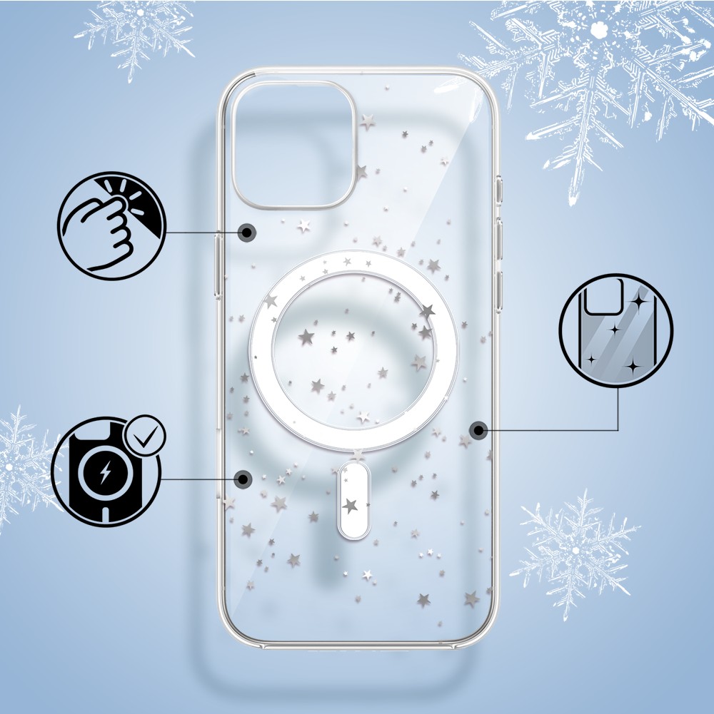 Etuitelefon.pl > Akcesoria do iphone 14 > Etui iphone 14 > Etui do iphone 14 z magsafe, zimowa magia, szampańskie gwiazdki, przeźroczyste