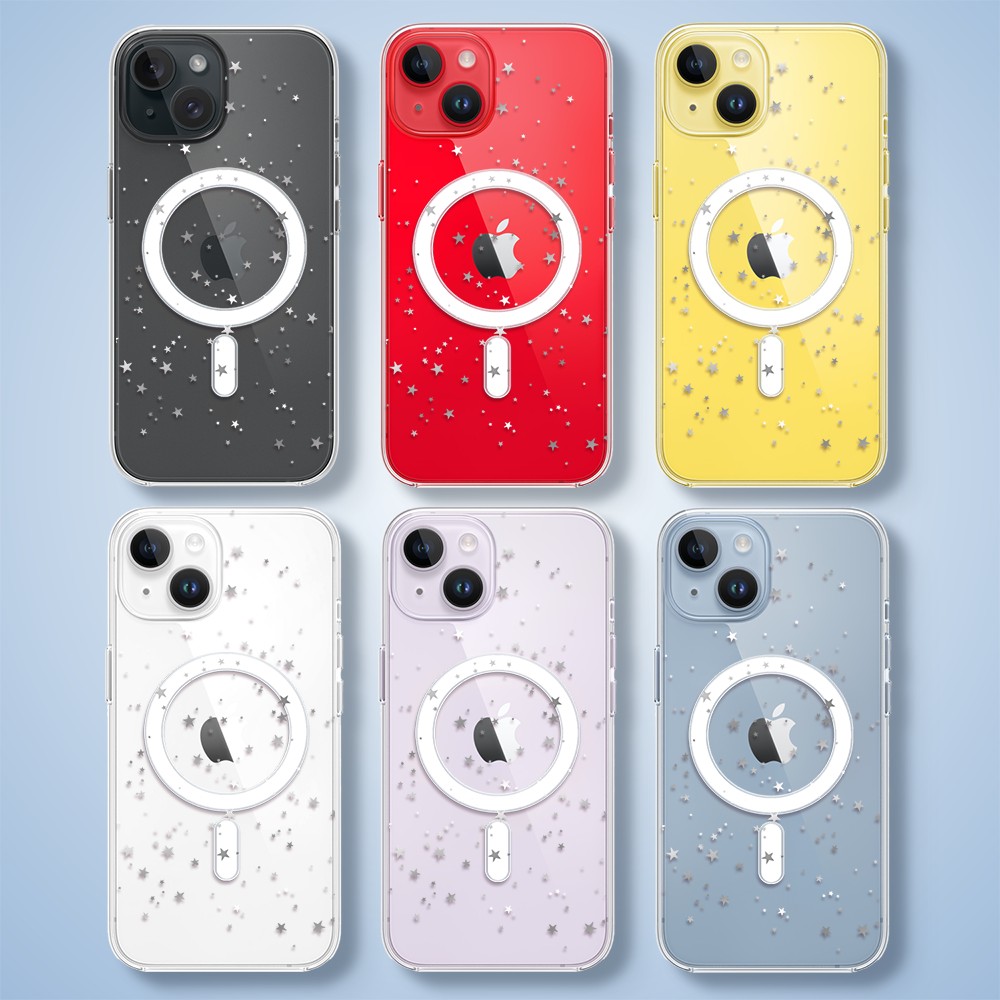 Etui do iPhone 14 z MagSafe, Zimowa Magia, Szampańskie gwiazdki, przeźroczyste1