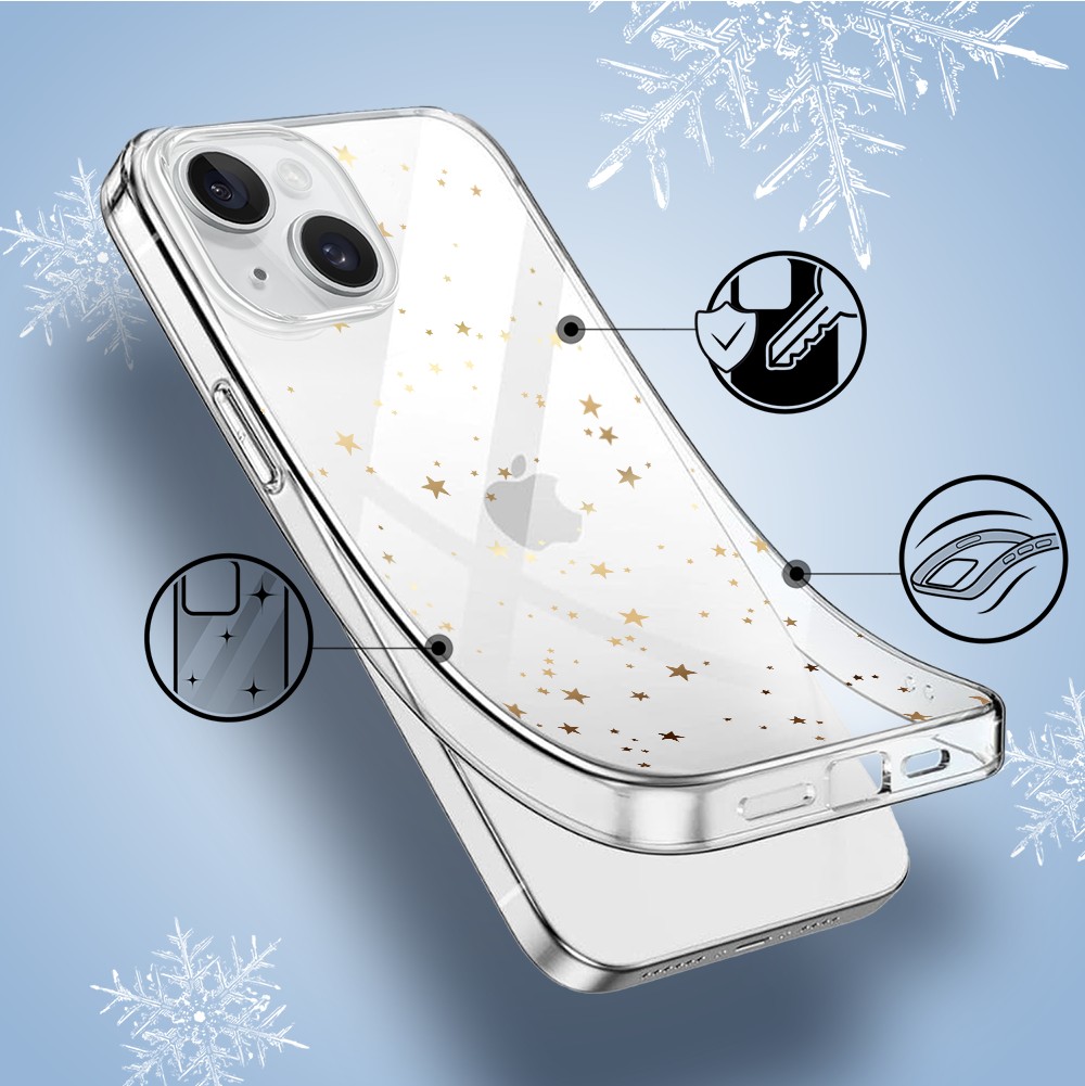 Etui do iPhone 14, Zimowa Magia, Złote gwiazdki, przeźroczyste1