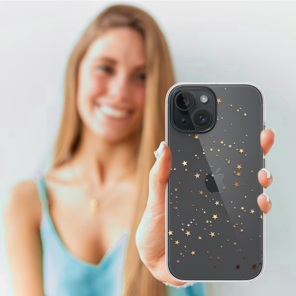 Etuitelefon.pl > Akcesoria do iphone 14 > Etui iphone 14 > Etui do iphone 14, zimowa magia, złote gwiazdki, przeźroczyste