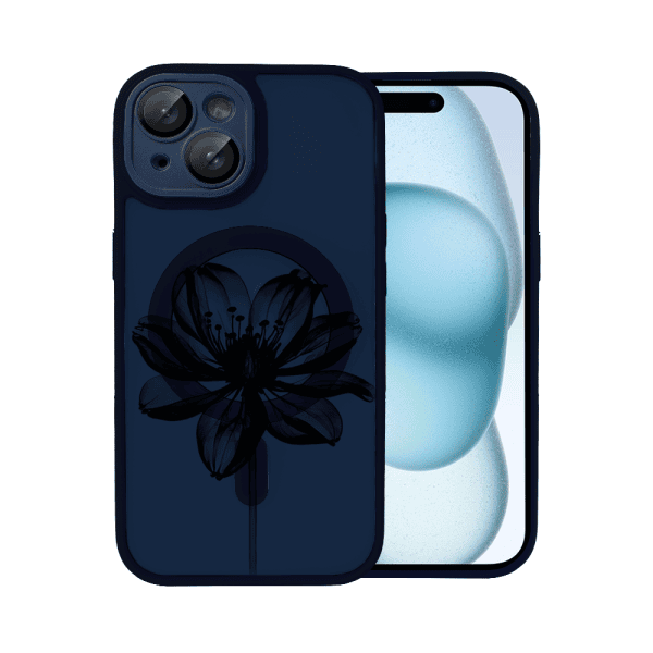 Etuitelefon.pl > Akcesoria do iphone 15 > Etui iphone 15 > Etui do iphone 15 color flush z magsafe, z osłoną aparatu, z nadrukiem czarny kwiat, granatowe